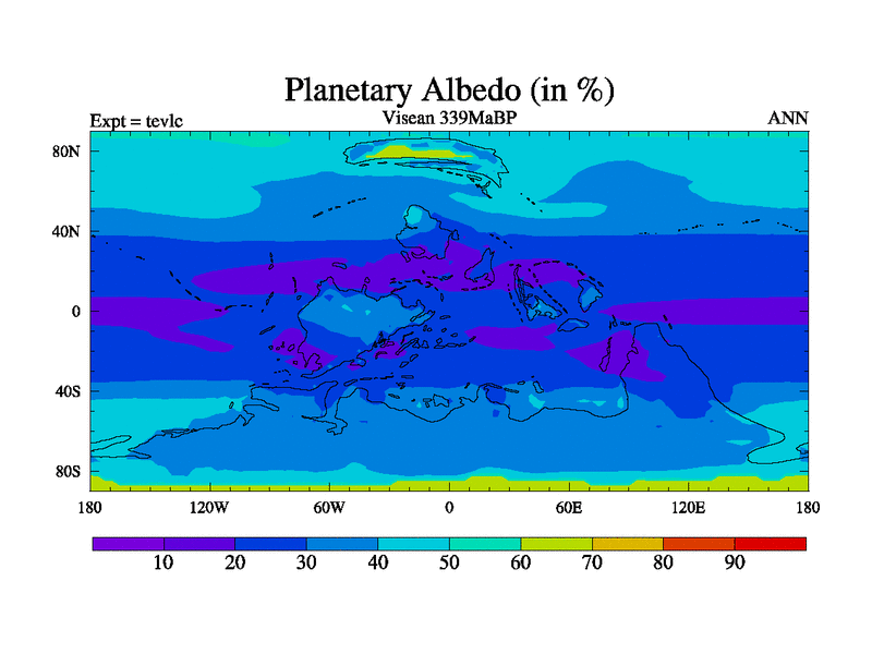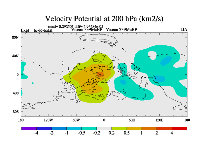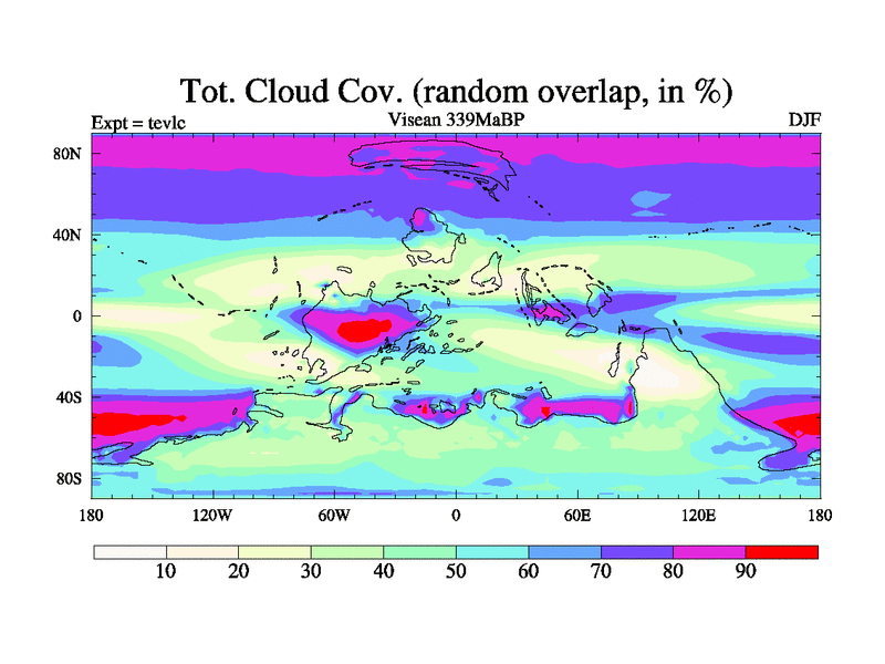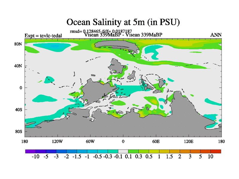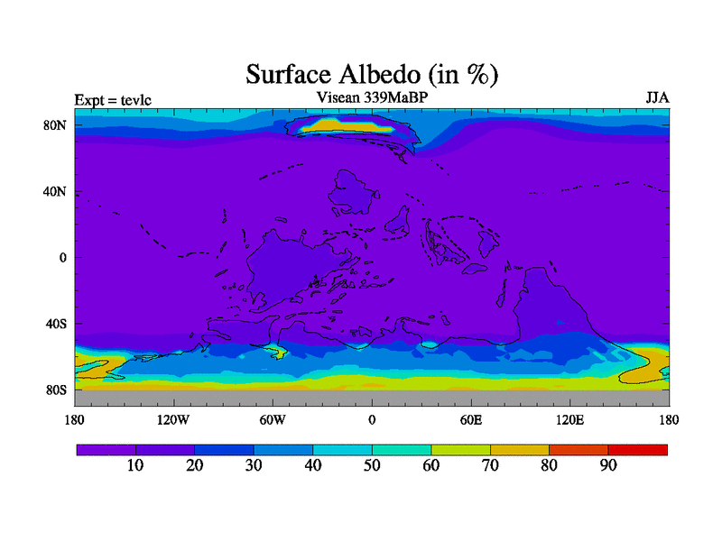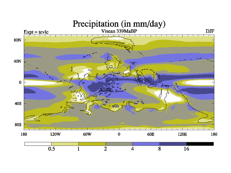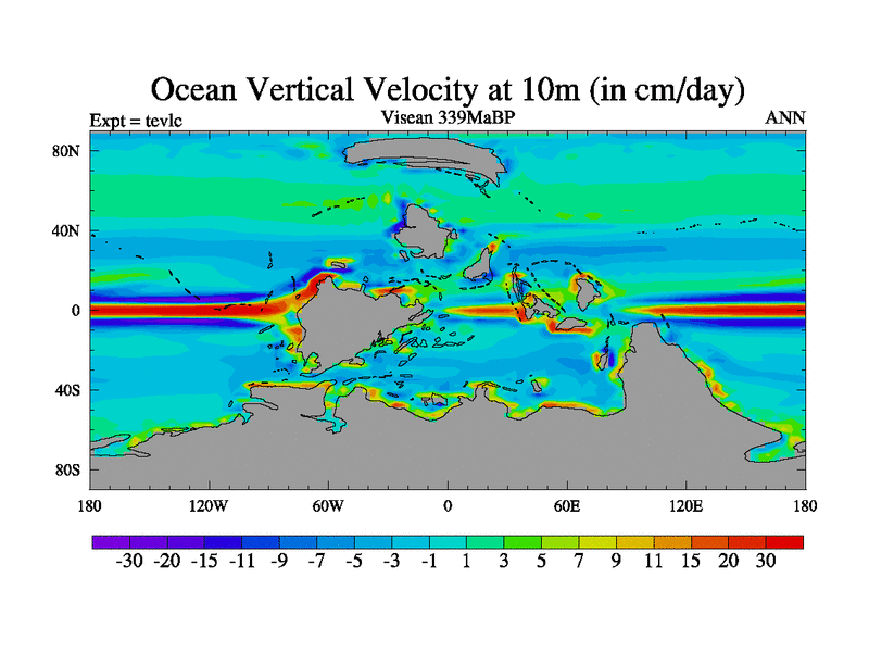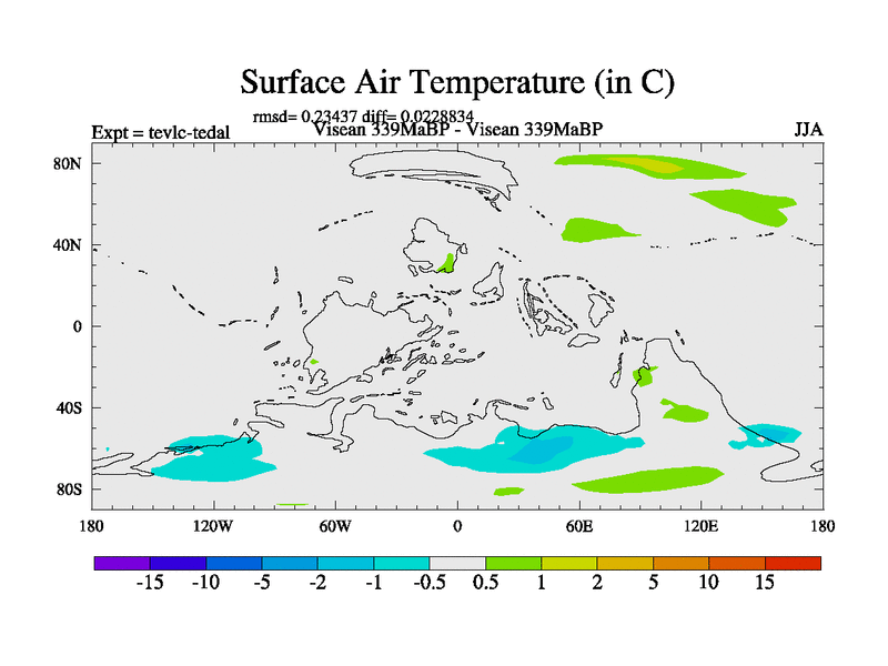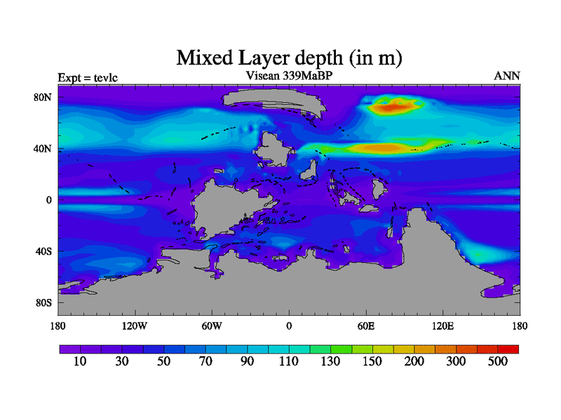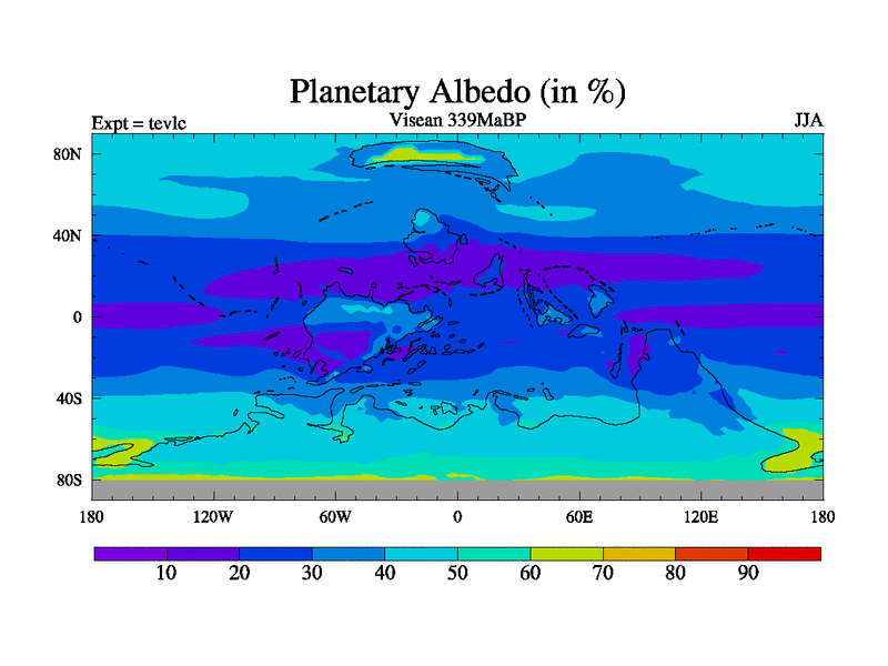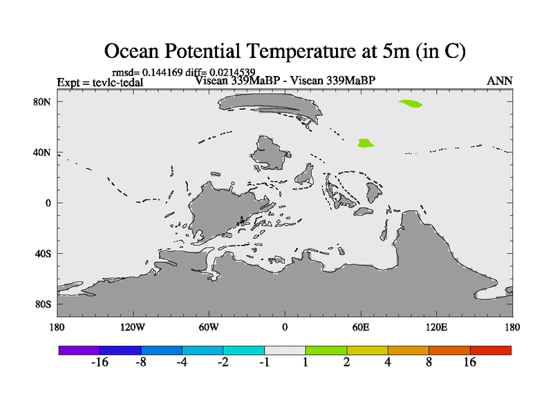 This is a Visean simulation with new control palaeogeog, 3xco2 and with appropriate reduction in solar constant. It is also using the newer ozone mod which better represents the effects of stratospheric ozone. It does include the ocean stream function.