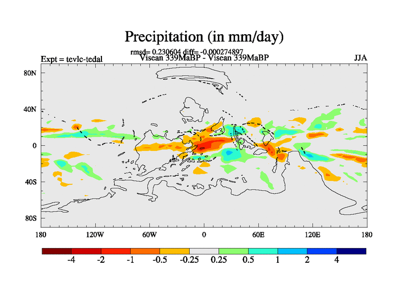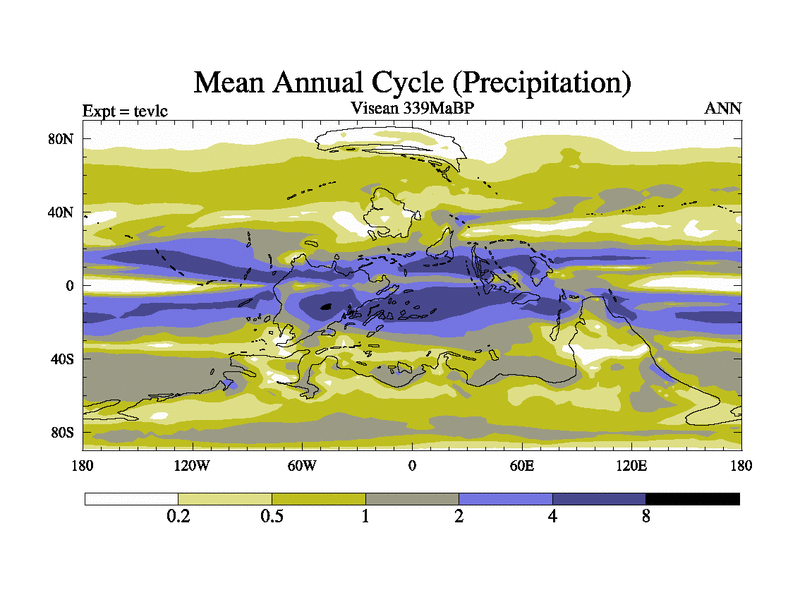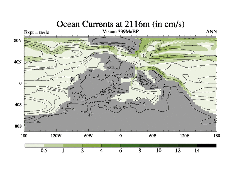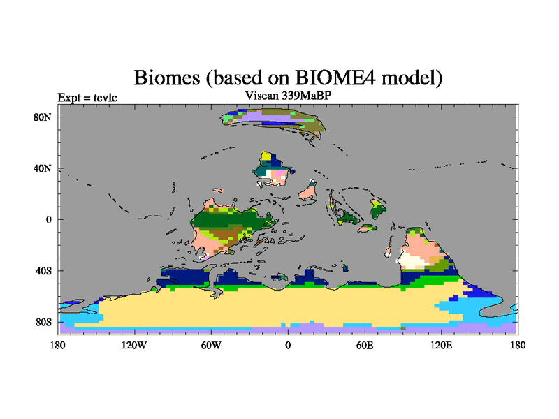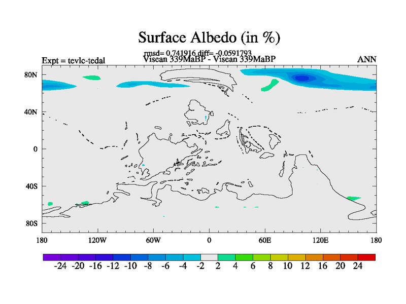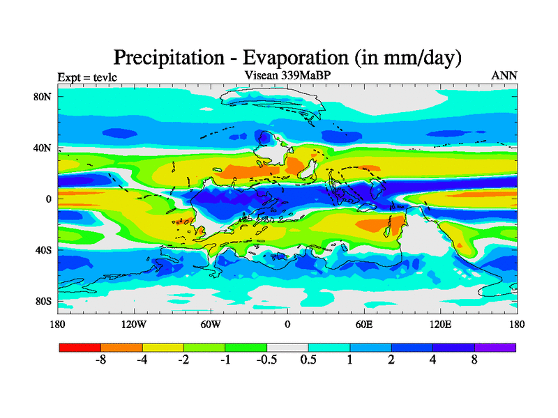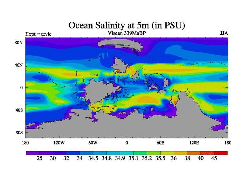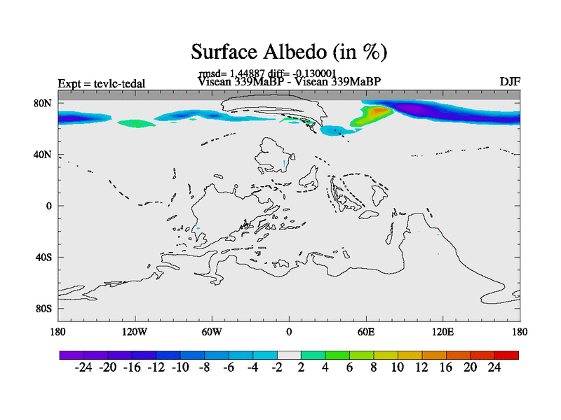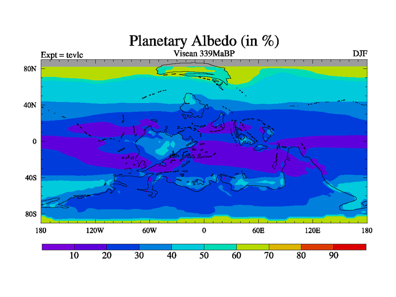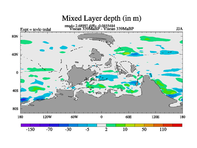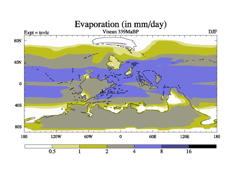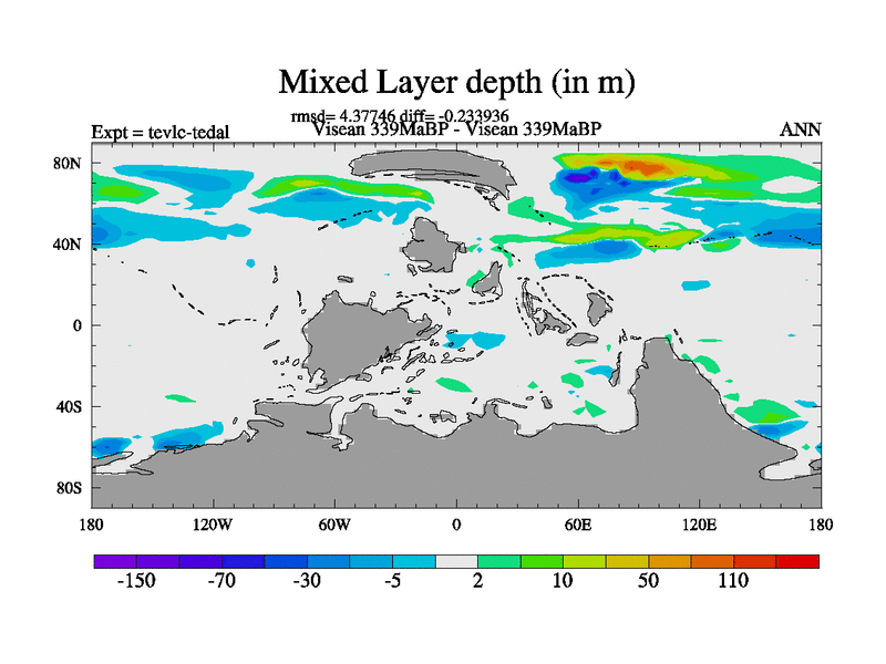 This is a Visean simulation with new control palaeogeog, 3xco2 and with appropriate reduction in solar constant. It is also using the newer ozone mod which better represents the effects of stratospheric ozone. It does include the ocean stream function.