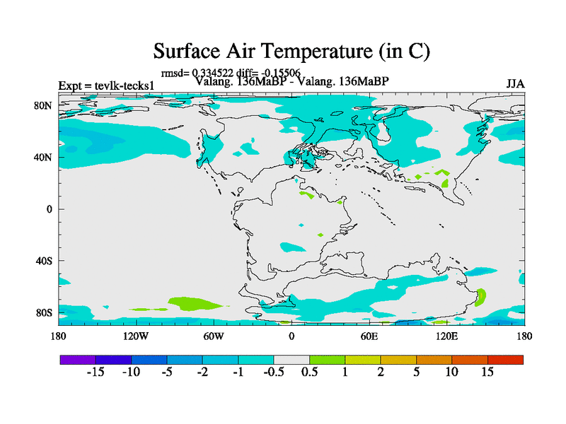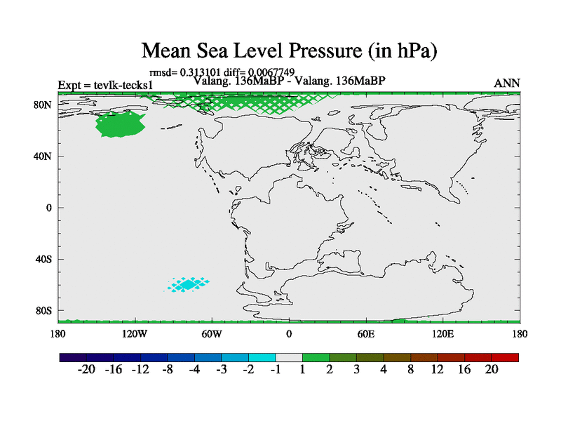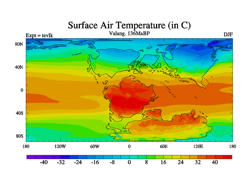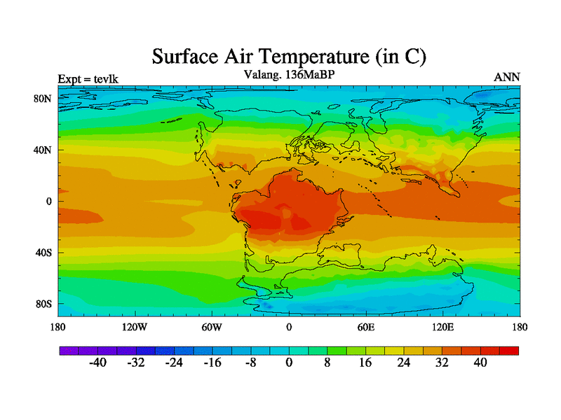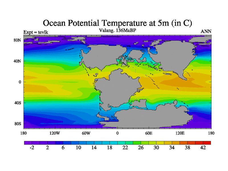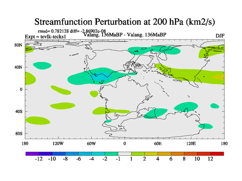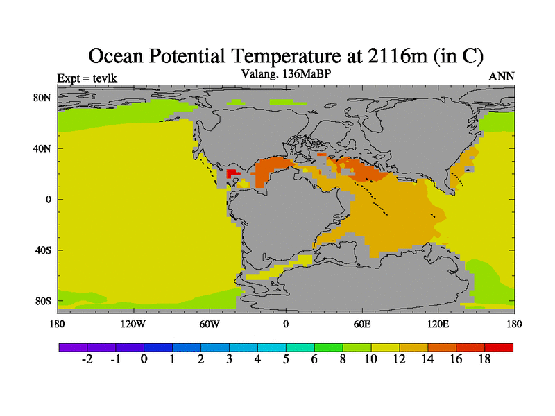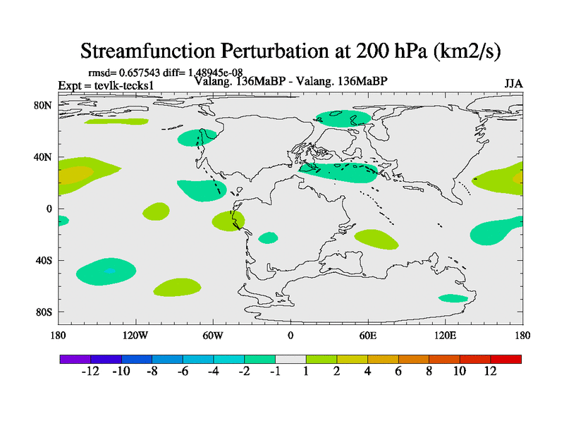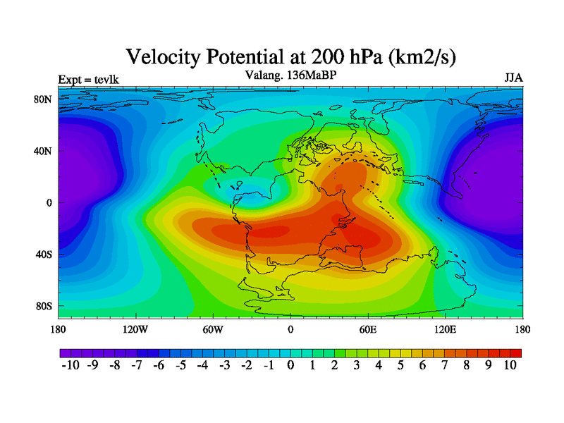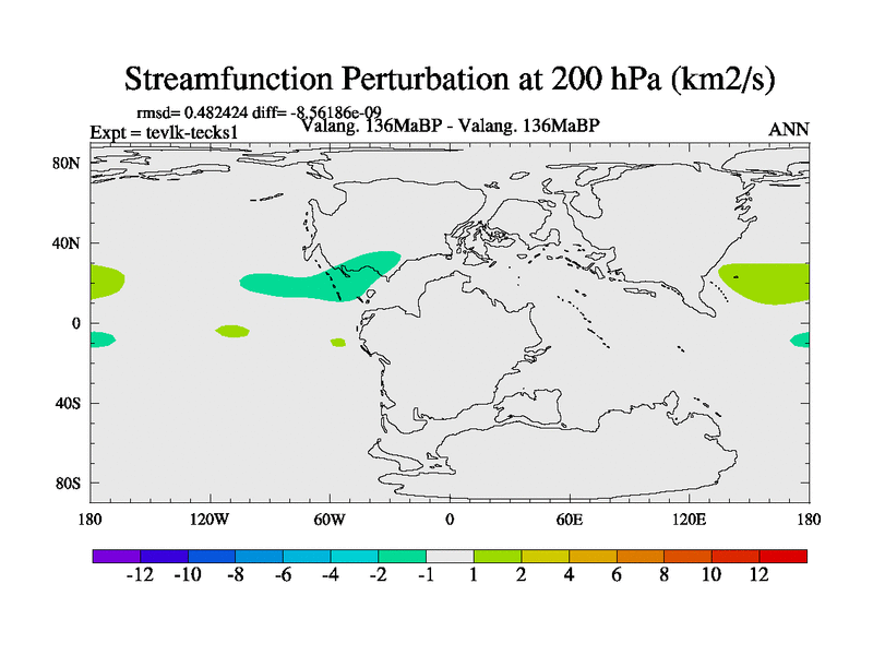 This is a Valanginian simulation with new control palaeogeog, 3xco2 and with appropriate reduction in solar constant. It is also using the newer ozone mod which better represents the effects of stratospheric ozone. It does include the ocean stream function.