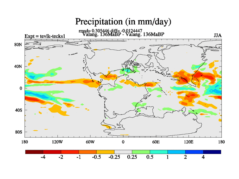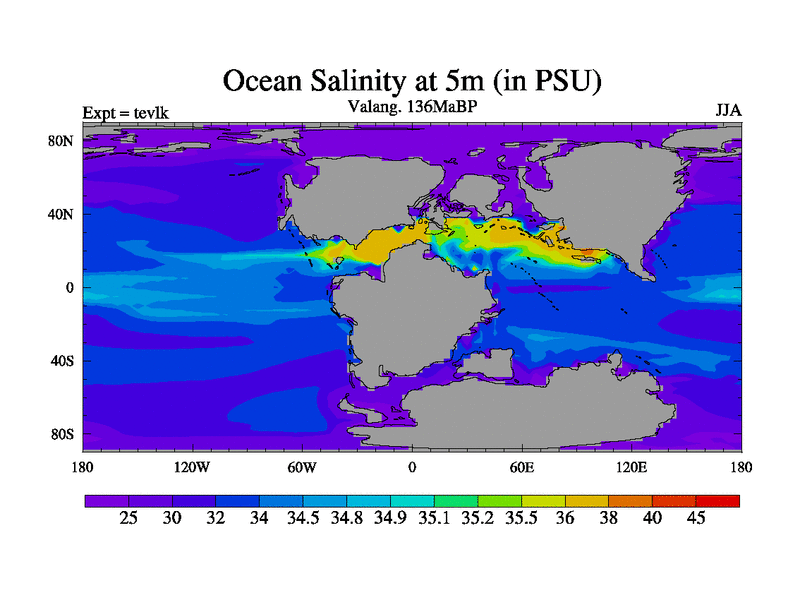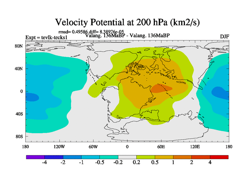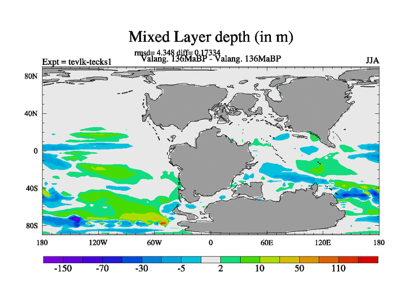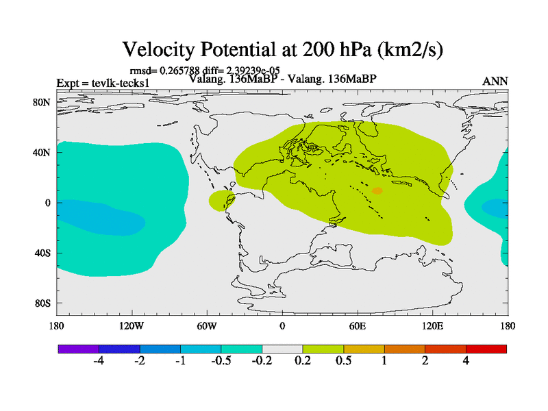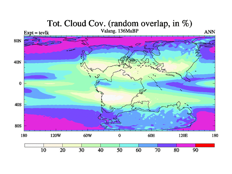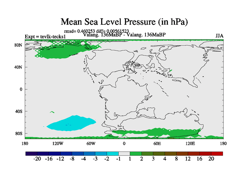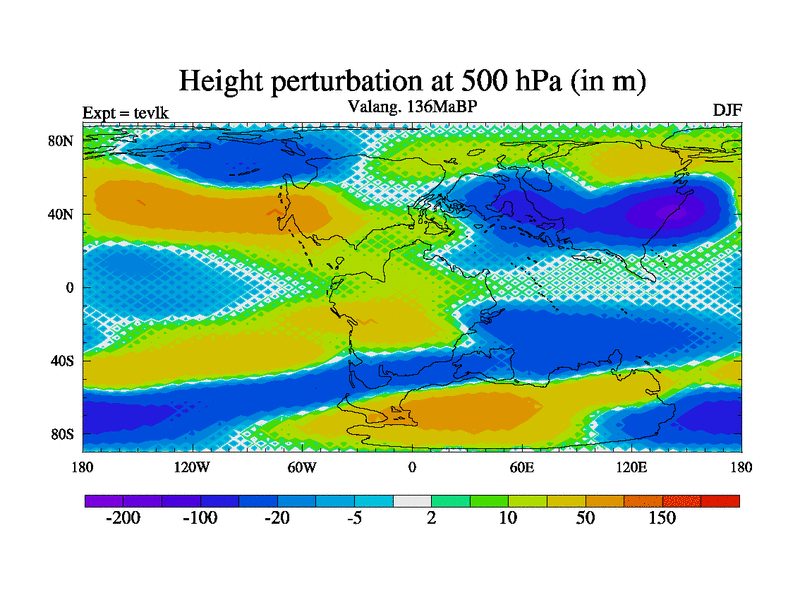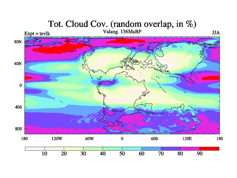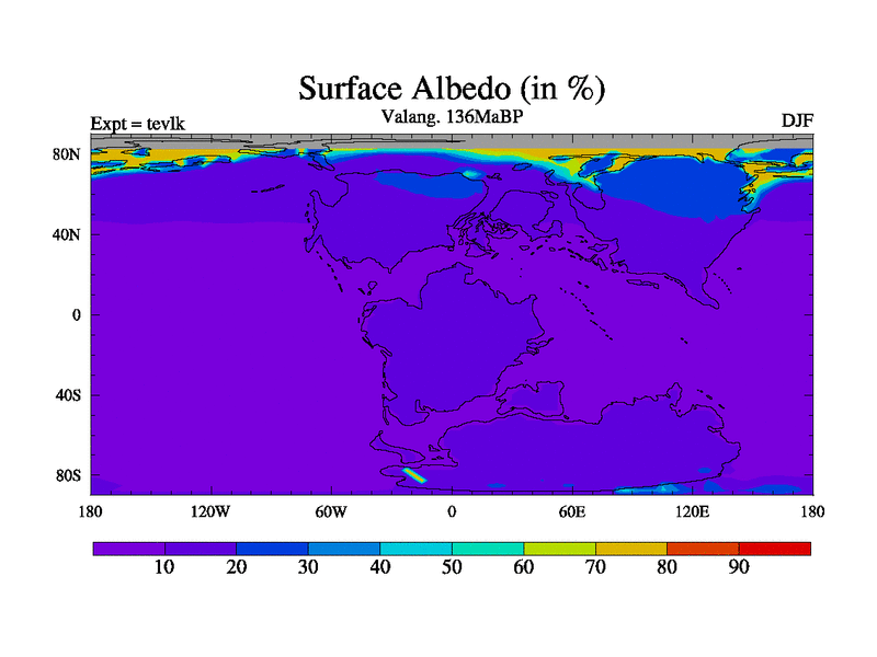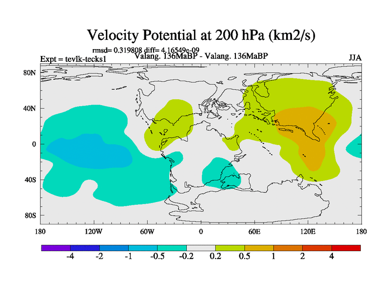 This is a Valanginian simulation with new control palaeogeog, 3xco2 and with appropriate reduction in solar constant. It is also using the newer ozone mod which better represents the effects of stratospheric ozone. It does include the ocean stream function.