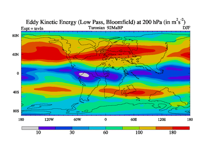 Low Pass Eddy Kinetic Energy at 200 hPa