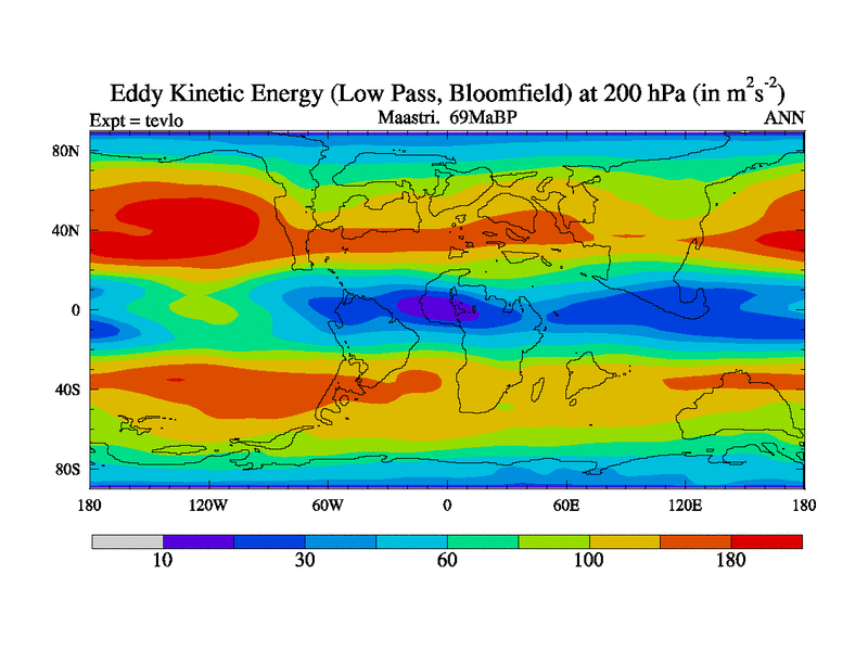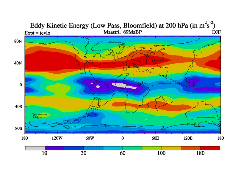 Low Pass Eddy Kinetic Energy at 200 hPa