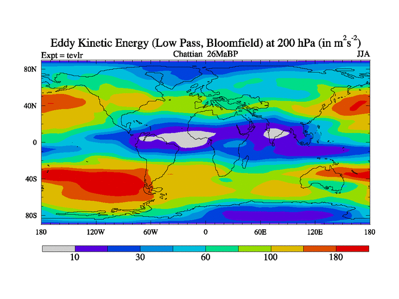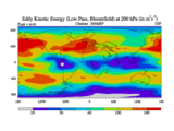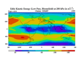 Low Pass Eddy Kinetic Energy at 200 hPa