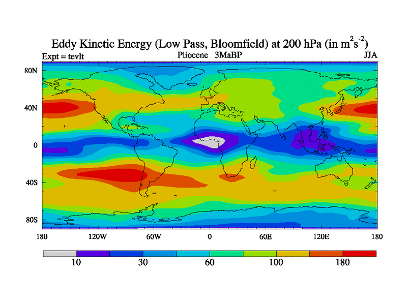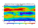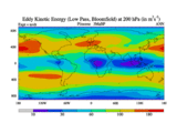 Low Pass Eddy Kinetic Energy at 200 hPa
