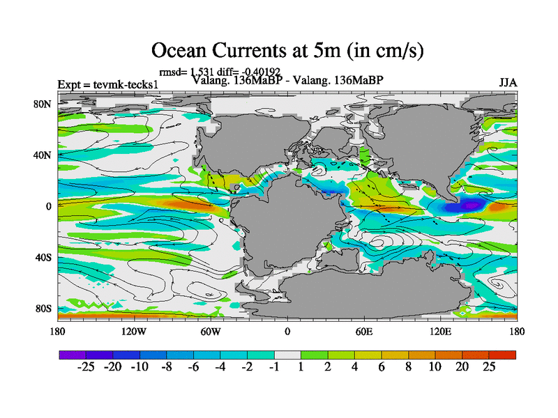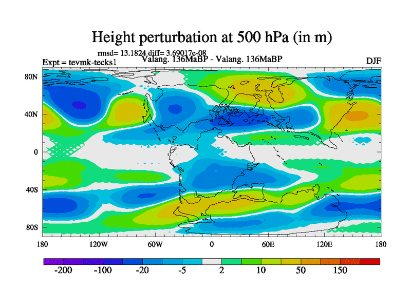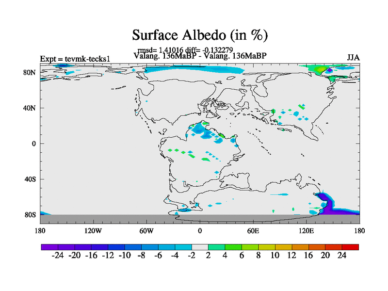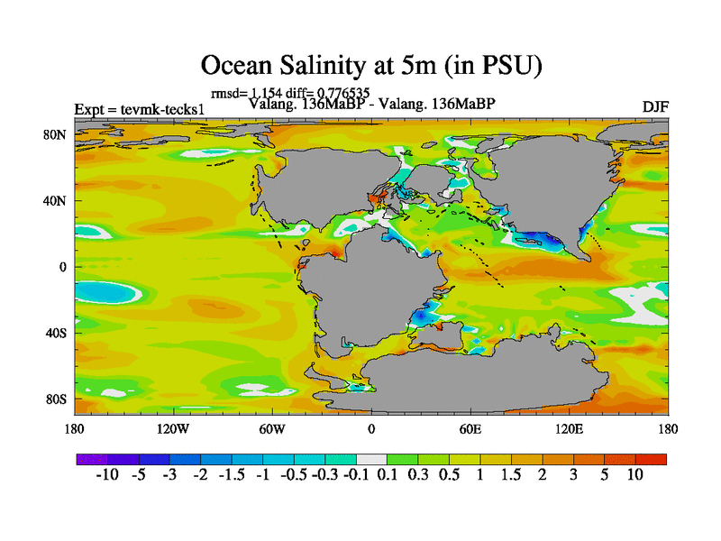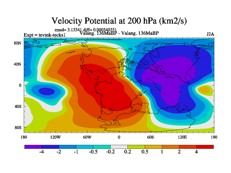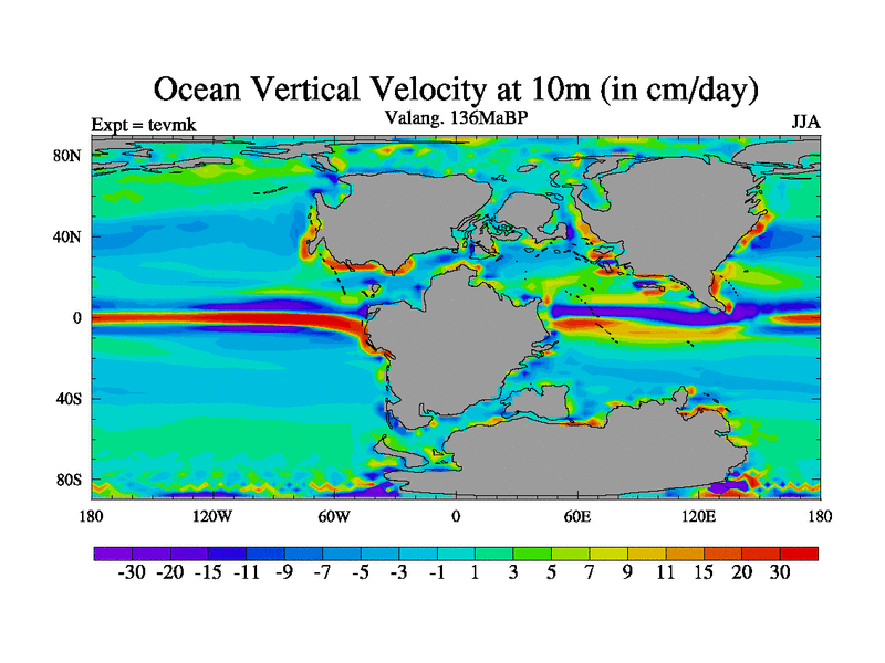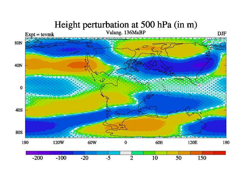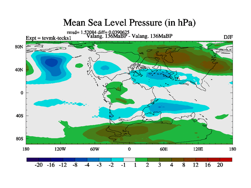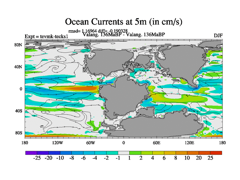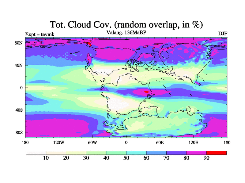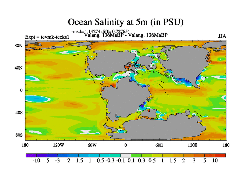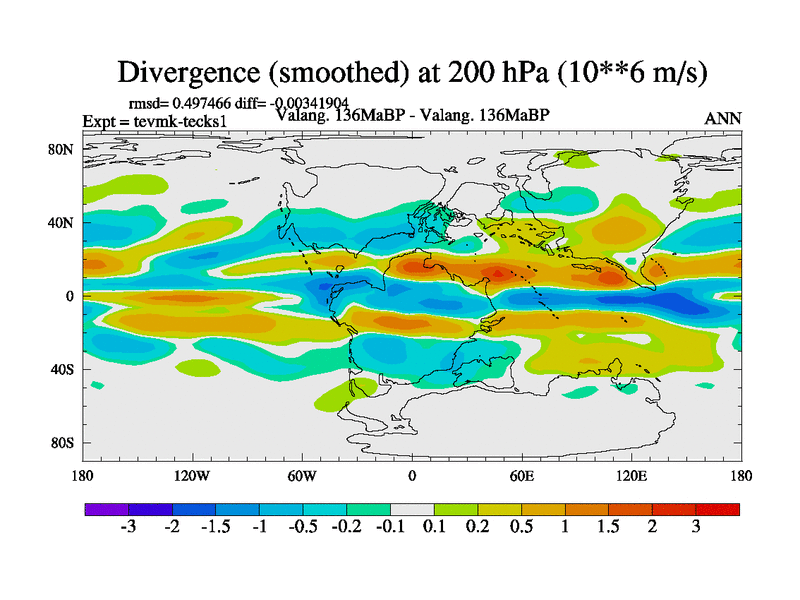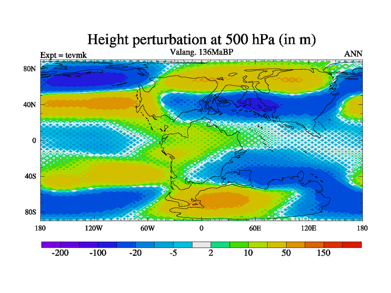 This is a Valanginian simulation with new control palaeogeog, 3xco2 and with appropriate reduction in solar constant. It is also using the newer ozone mod which better represents the effects of stratospheric ozone. It does include the ocean stream function.