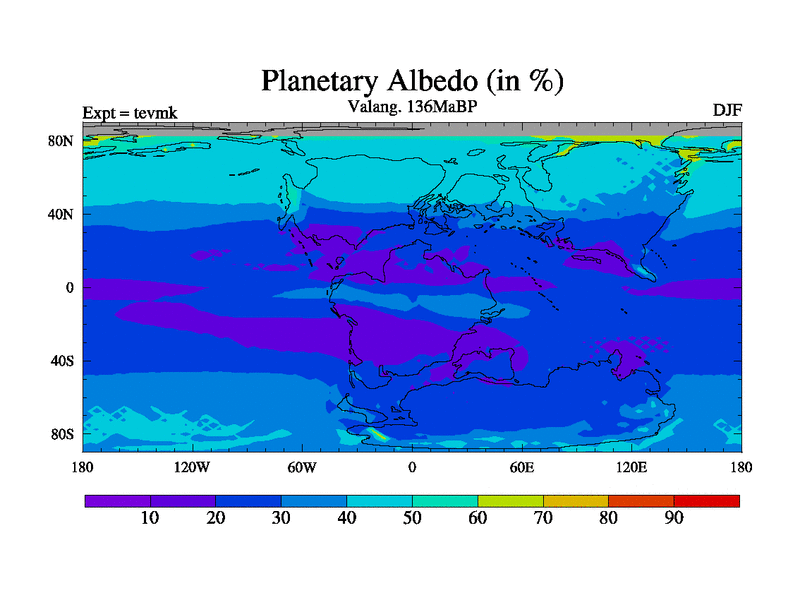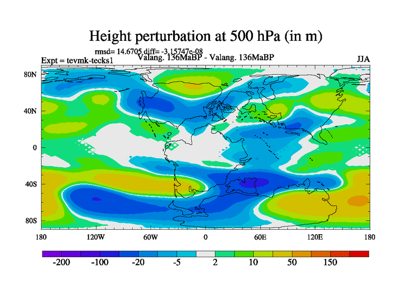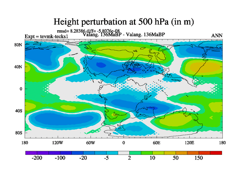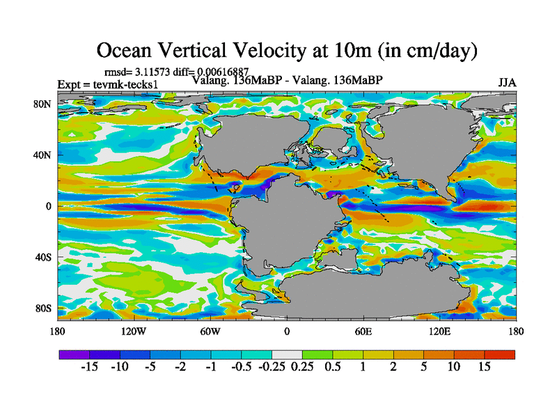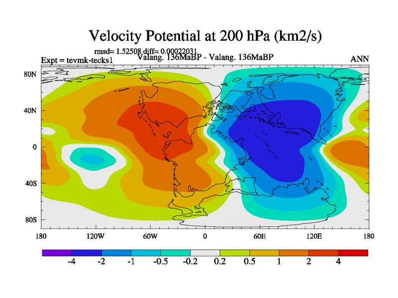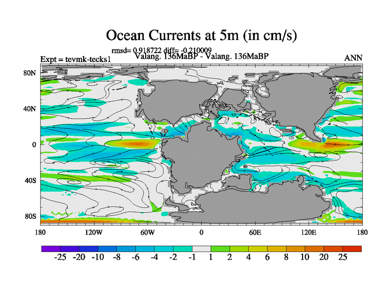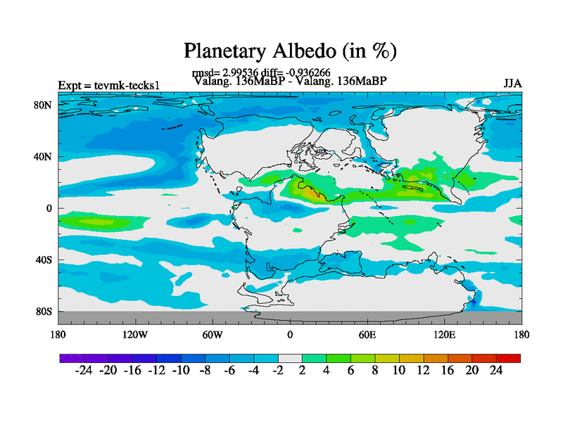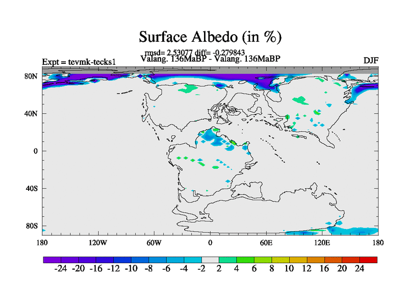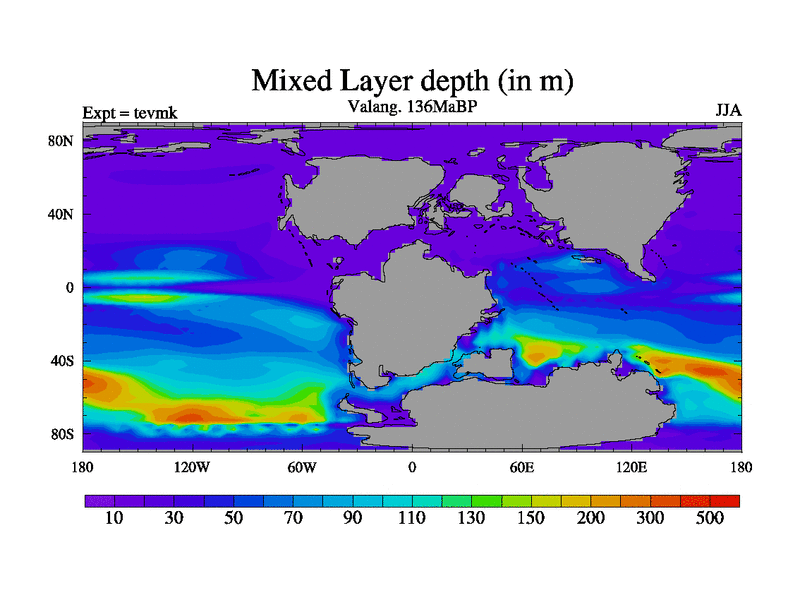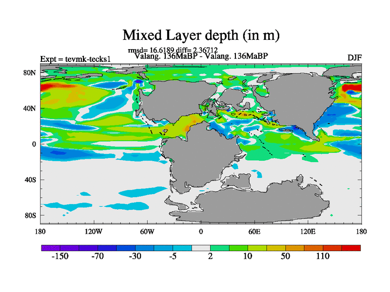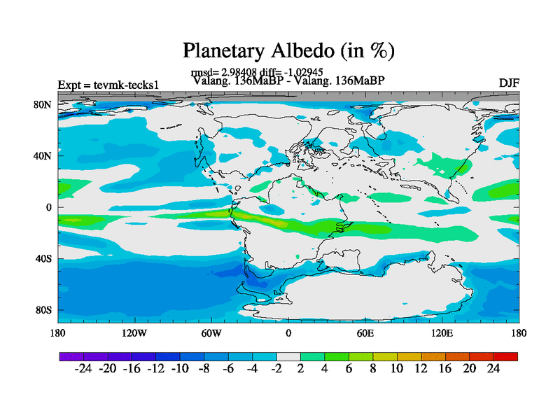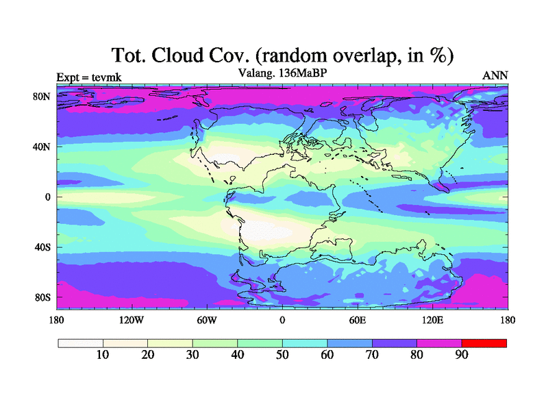 This is a Valanginian simulation with new control palaeogeog, 3xco2 and with appropriate reduction in solar constant. It is also using the newer ozone mod which better represents the effects of stratospheric ozone. It does include the ocean stream function.