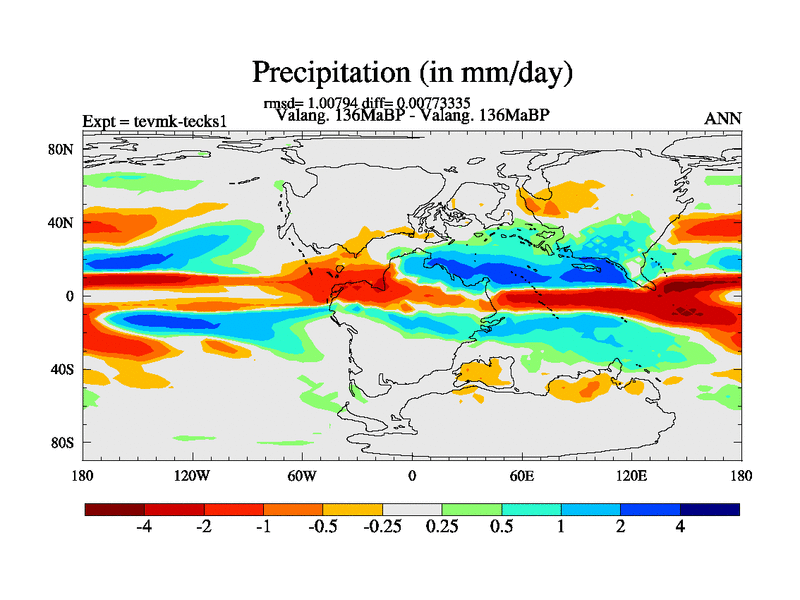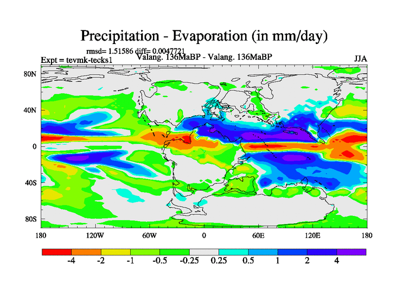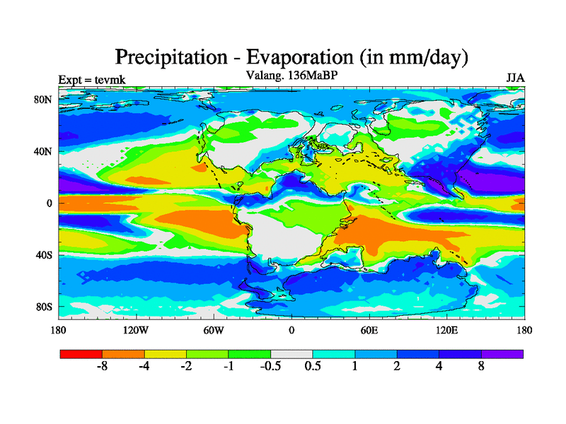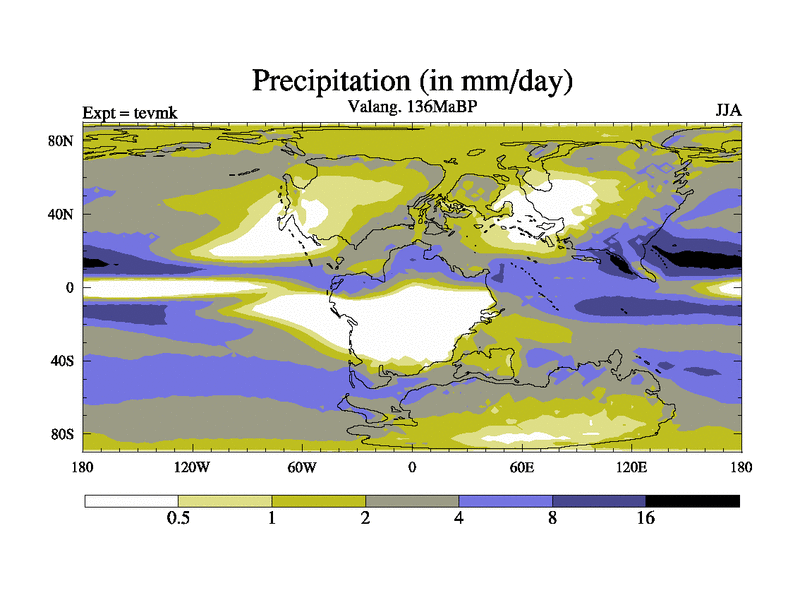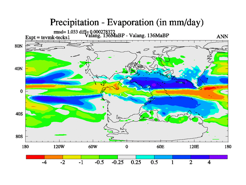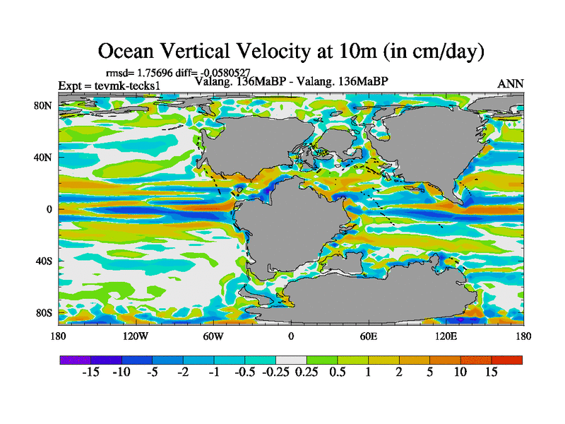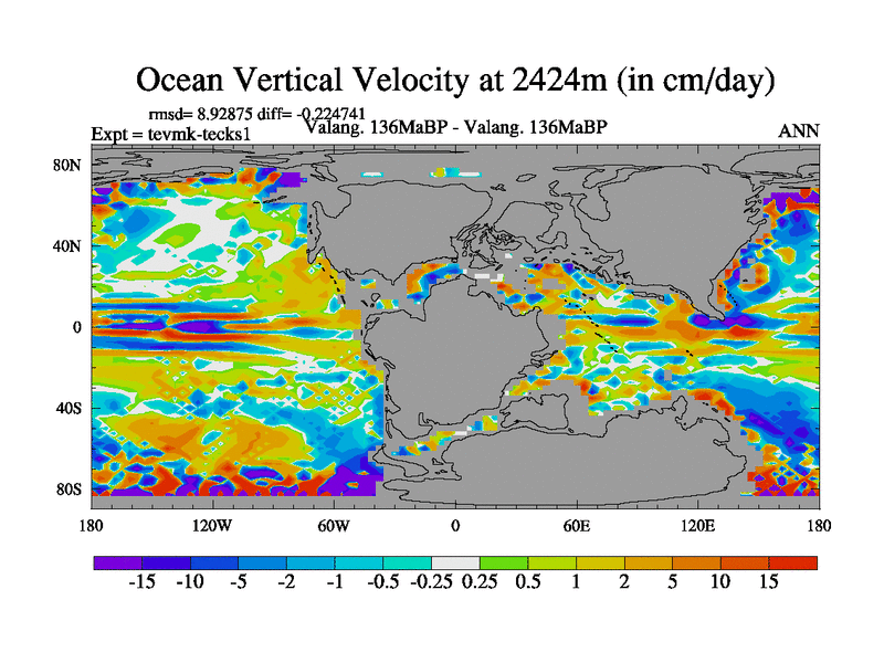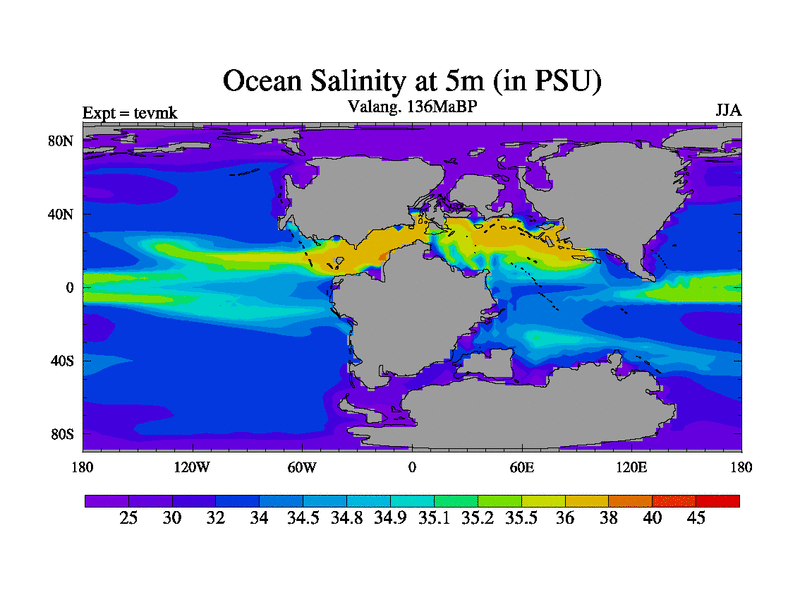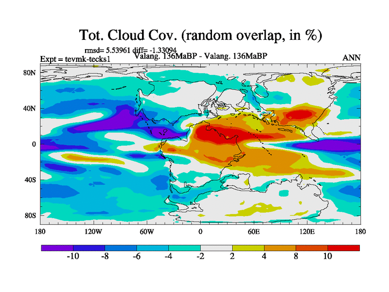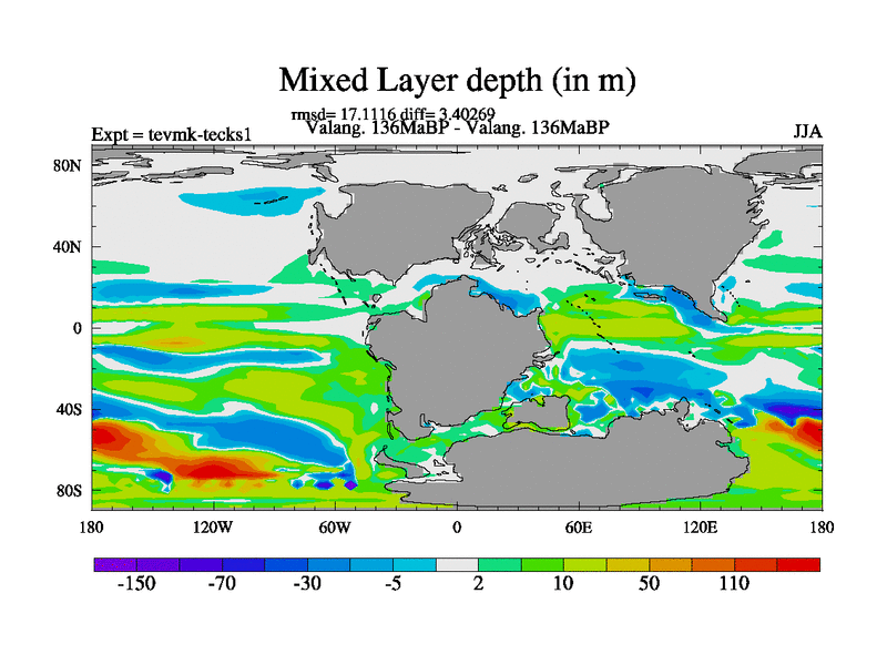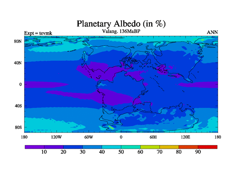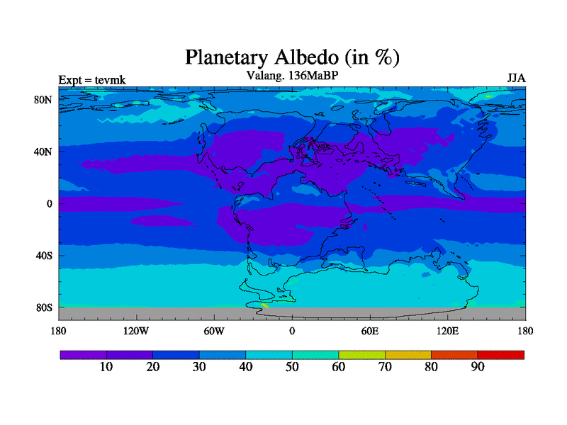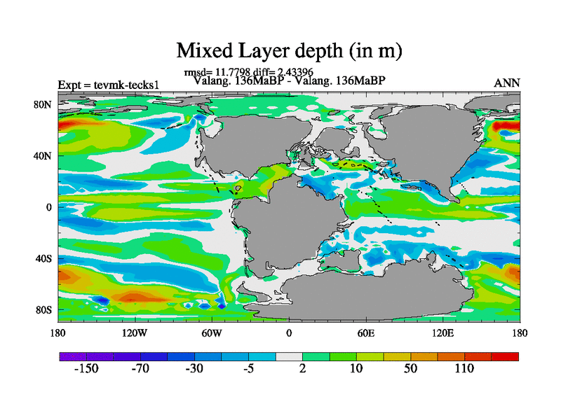This is a Valanginian simulation with new control palaeogeog, 3xco2 and with appropriate reduction in solar constant. It is also using the newer ozone mod which better represents the effects of stratospheric ozone. It does include the ocean stream function.