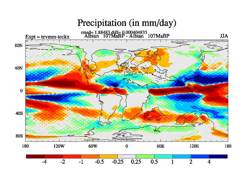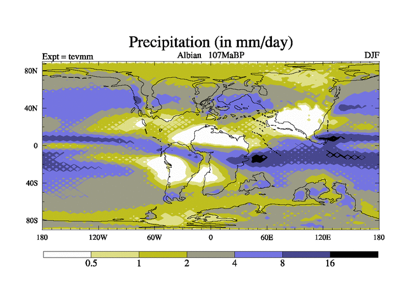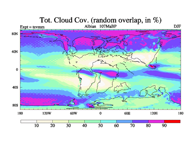 An Albian simulation with new control palaeogeog, 4xco2 and with appropriate reduction in solar constant. It is also using the newer ozone mod which better represents the effects of stratospheric ozone.