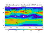 Low Pass Eddy Kinetic Energy at 200 hPa