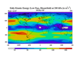 Low Pass Eddy Kinetic Energy at 200 hPa