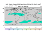 Low Pass Eddy Kinetic Energy at 200 hPa