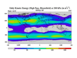 Low Pass Eddy Kinetic Energy at 200 hPa