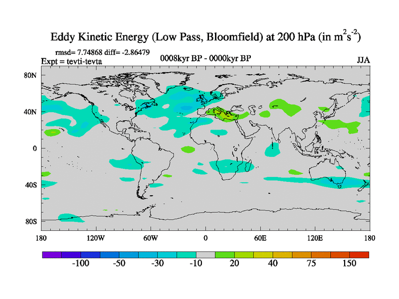 Low Pass Eddy Kinetic Energy at 200 hPa
