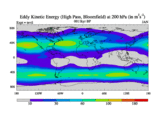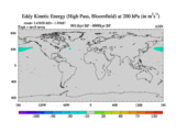 Low Pass Eddy Kinetic Energy at 200 hPa