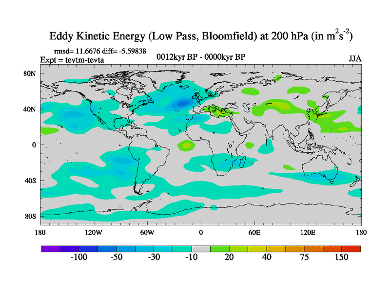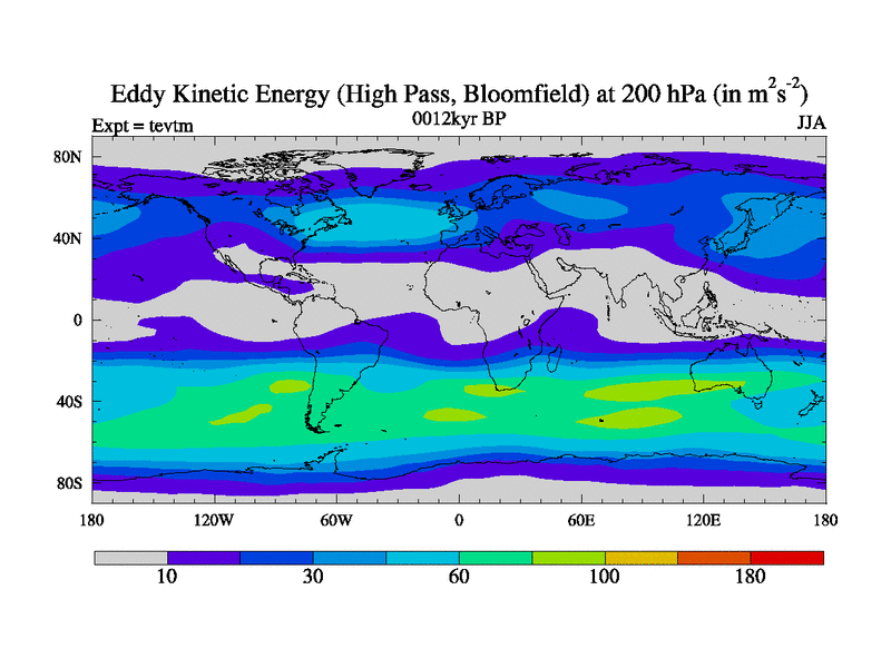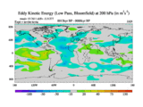 Low Pass Eddy Kinetic Energy at 200 hPa