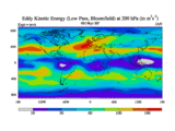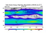Low Pass Eddy Kinetic Energy at 200 hPa