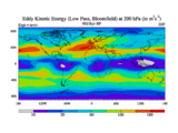 Low Pass Eddy Kinetic Energy at 200 hPa