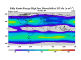 Low Pass Eddy Kinetic Energy at 200 hPa