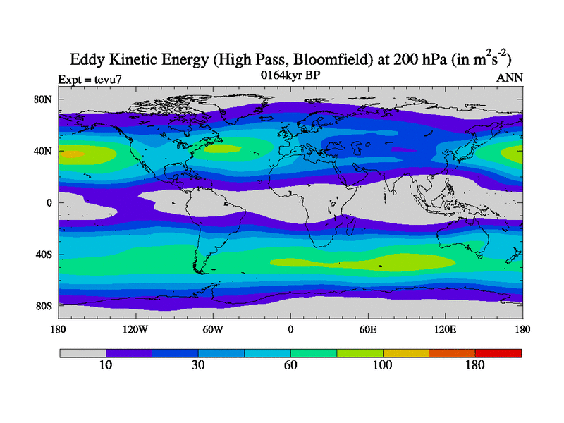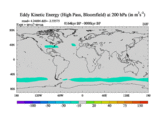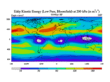 Low Pass Eddy Kinetic Energy at 200 hPa