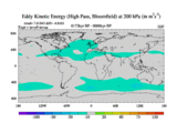 Low Pass Eddy Kinetic Energy at 200 hPa