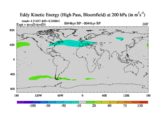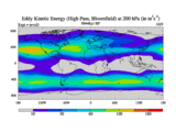 Low Pass Eddy Kinetic Energy at 200 hPa
