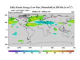 Low Pass Eddy Kinetic Energy at 200 hPa