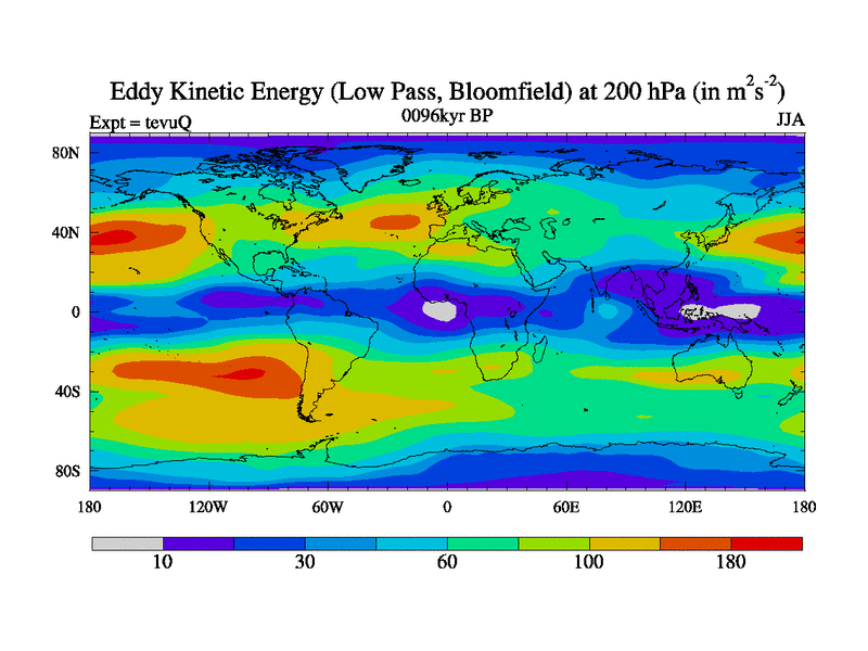 Low Pass Eddy Kinetic Energy at 200 hPa