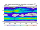Low Pass Eddy Kinetic Energy at 200 hPa