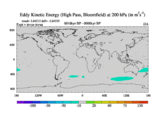 Low Pass Eddy Kinetic Energy at 200 hPa