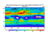 Low Pass Eddy Kinetic Energy at 200 hPa