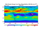 Low Pass Eddy Kinetic Energy at 200 hPa