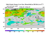 Low Pass Eddy Kinetic Energy at 200 hPa