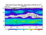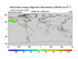 Low Pass Eddy Kinetic Energy at 200 hPa