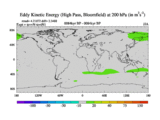 Low Pass Eddy Kinetic Energy at 200 hPa