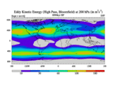 High Pass Eddy Kinetic Energy at 200 hPa