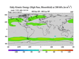 Low Pass Eddy Kinetic Energy at 200 hPa