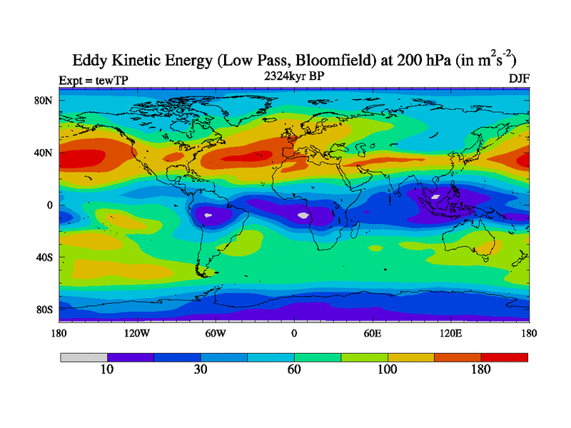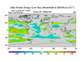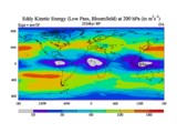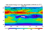 Low Pass Eddy Kinetic Energy at 200 hPa