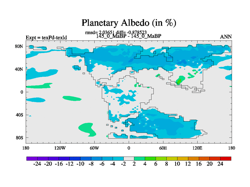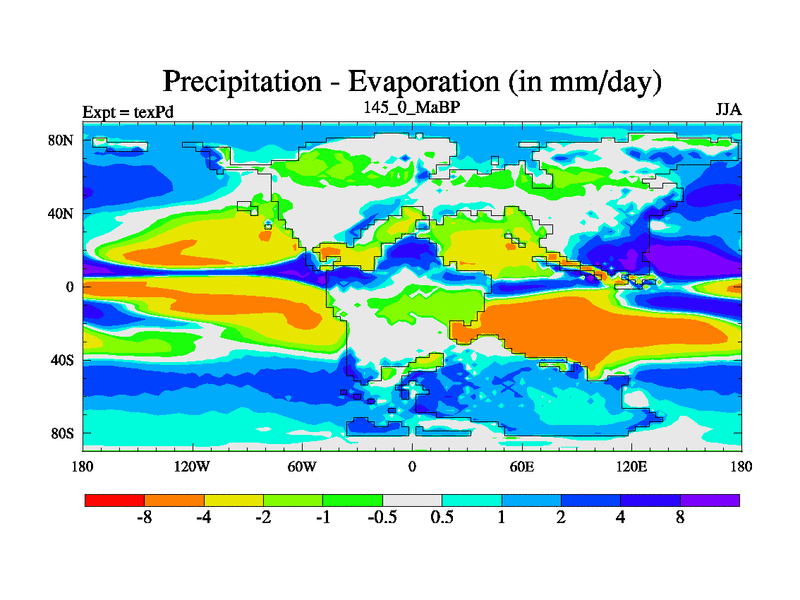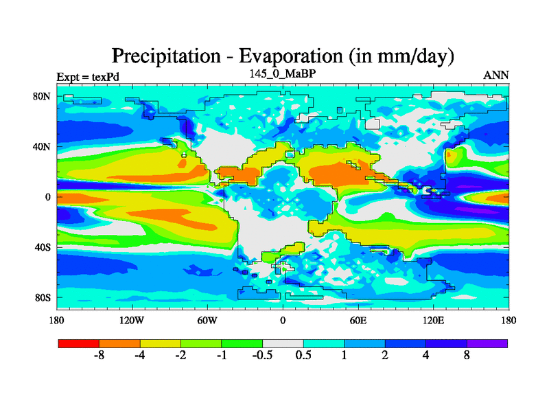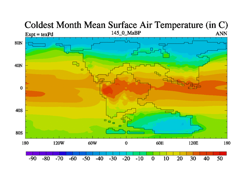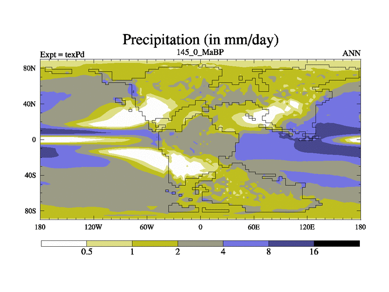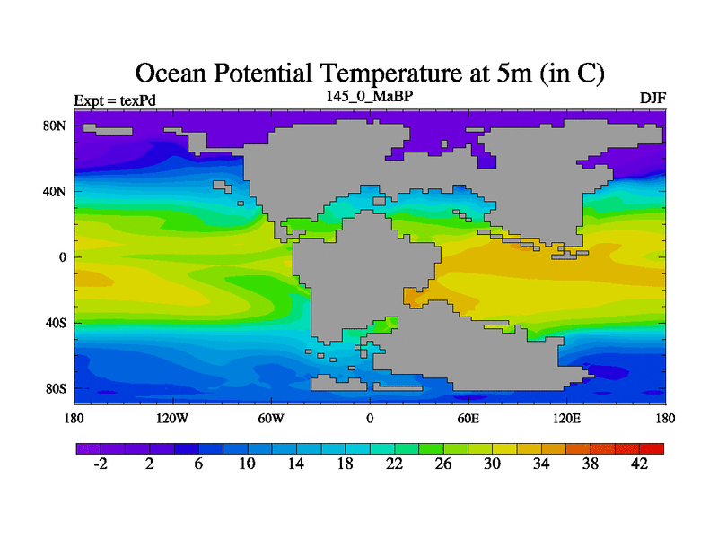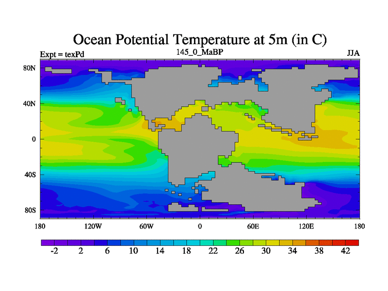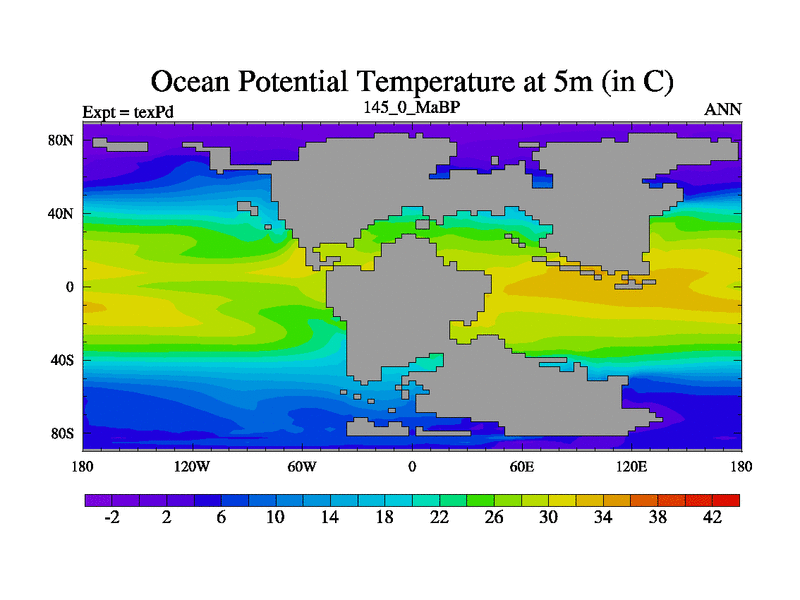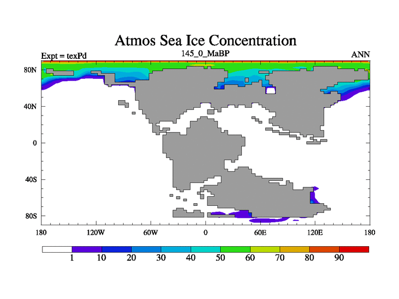 This is the 145.0 Ma simulation using the Scotese palaeogeographies.