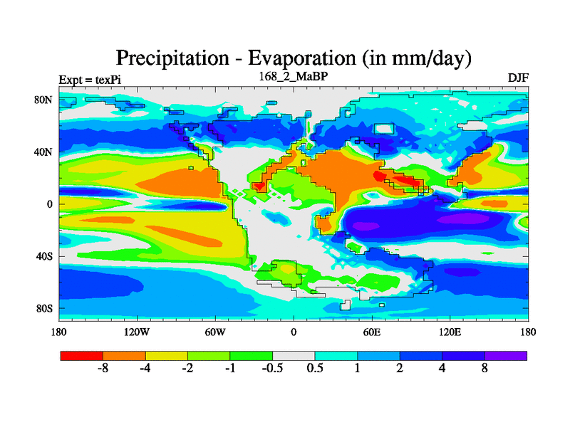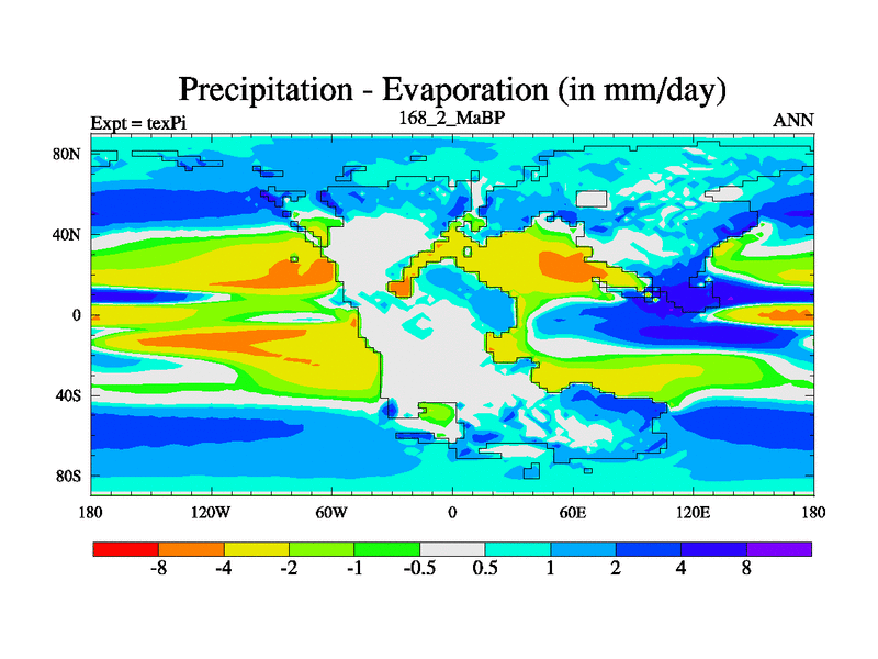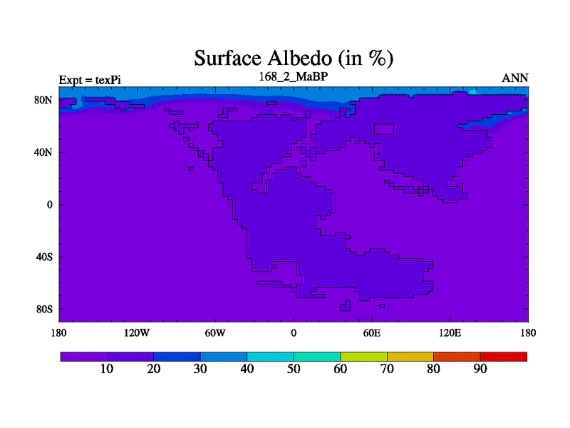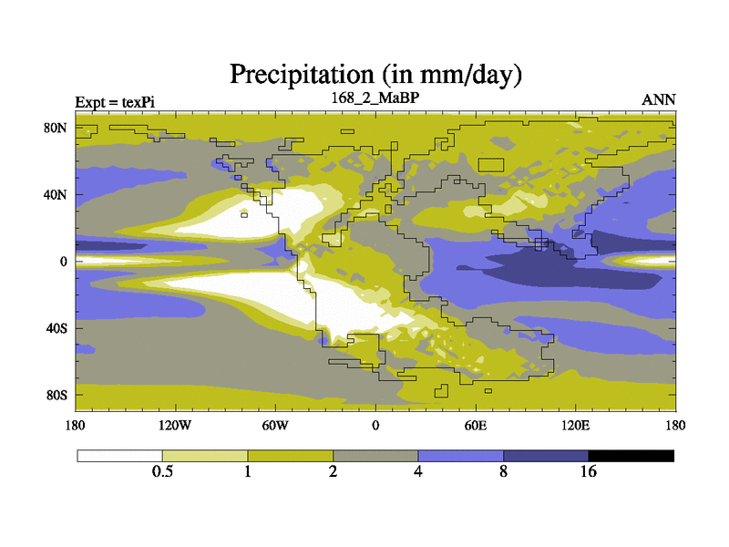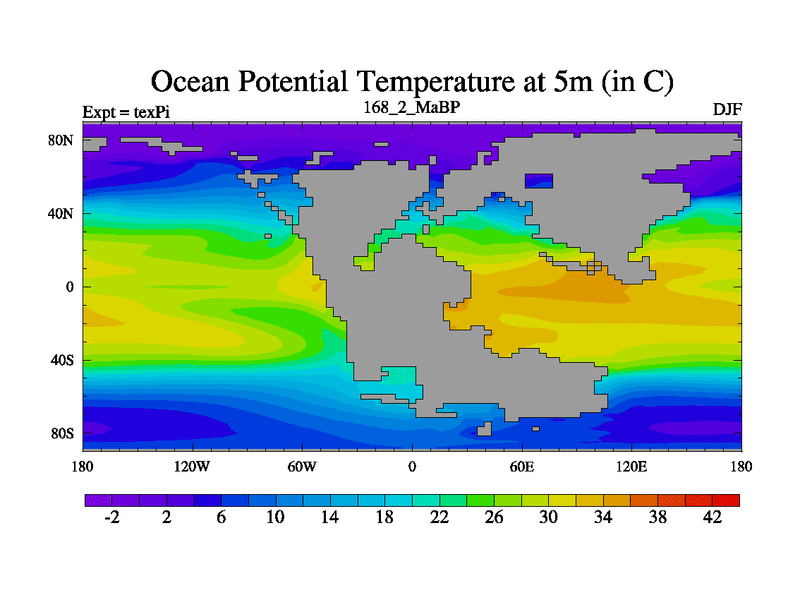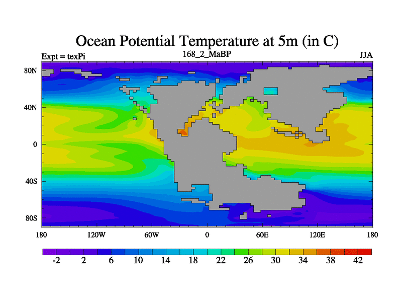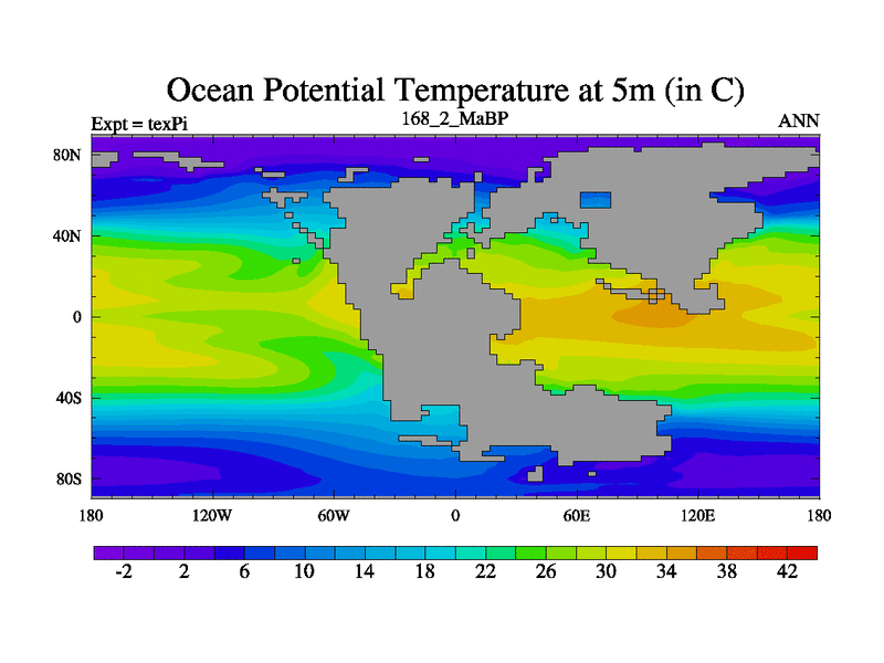 This is the 168.2 Ma simulation using the Scotese palaeogeographies.