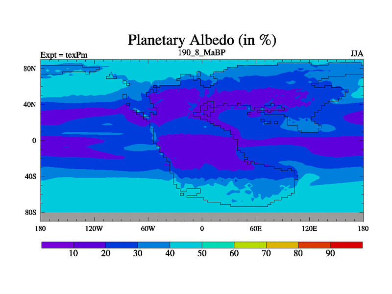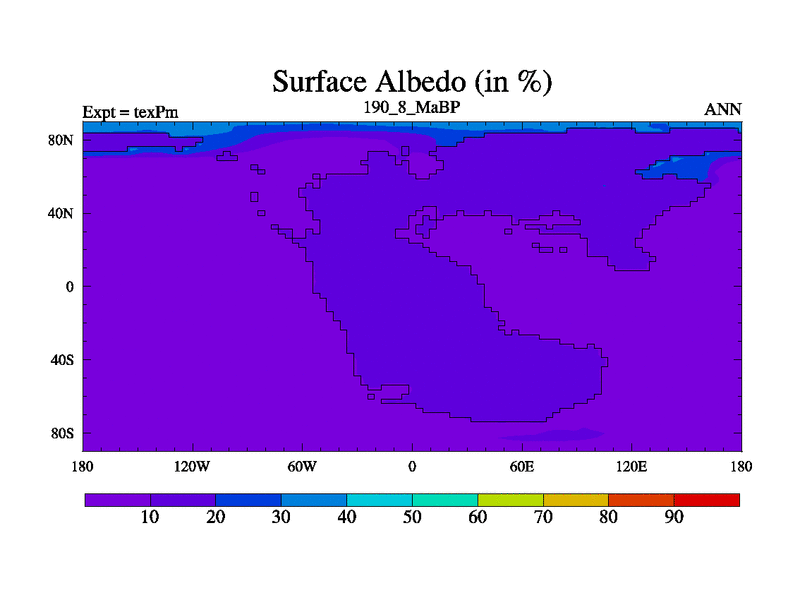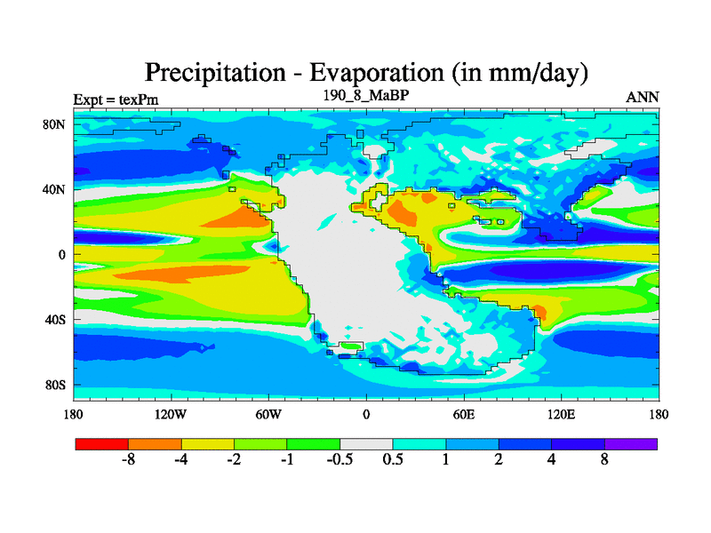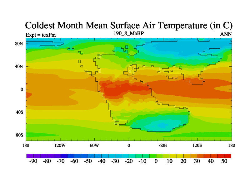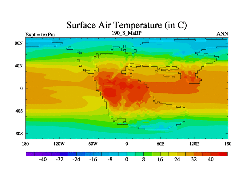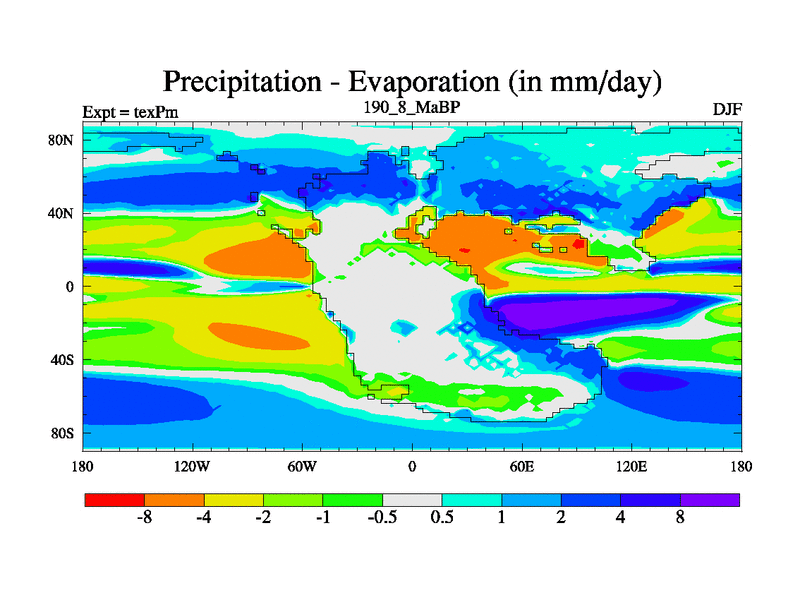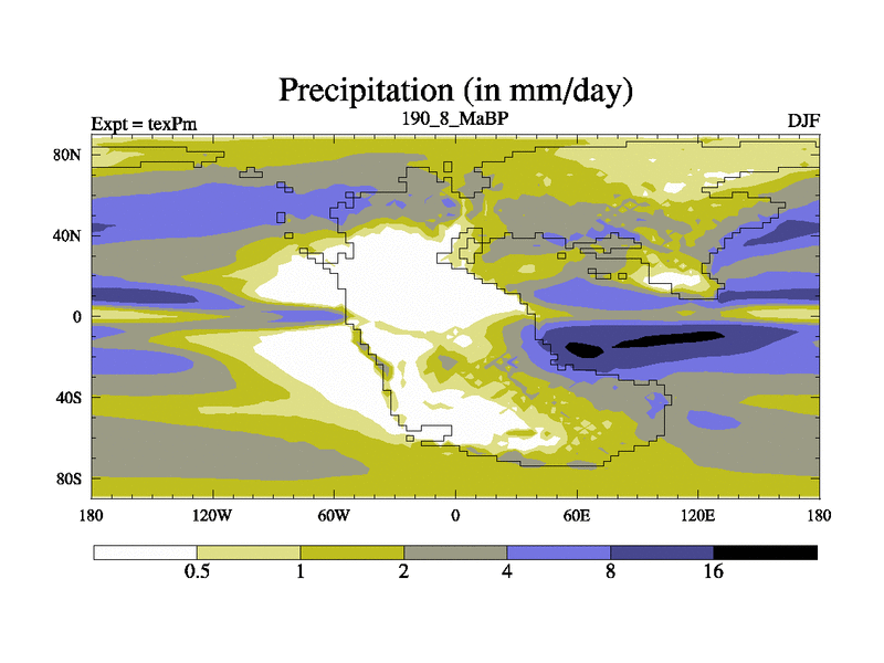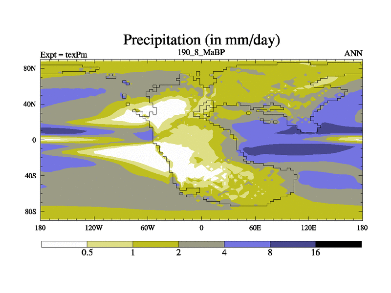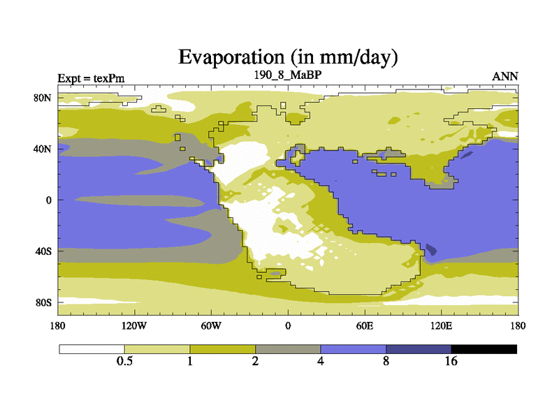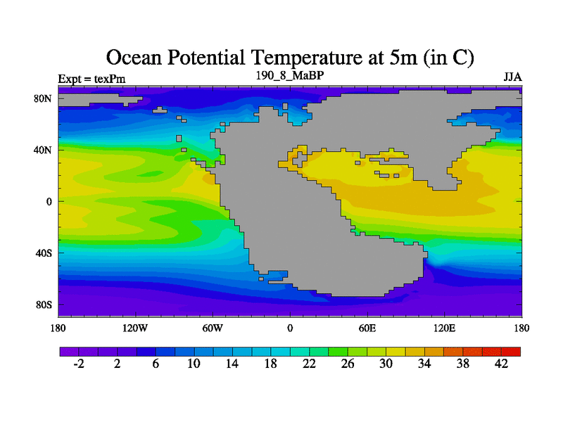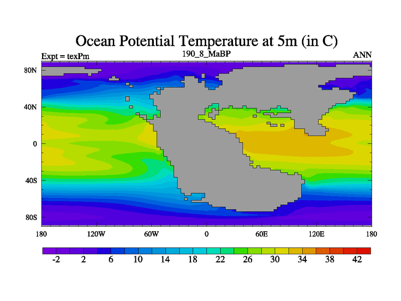 This is the 190.8 Ma simulation using the Scotese palaeogeographies.