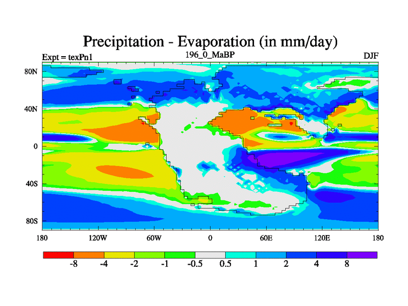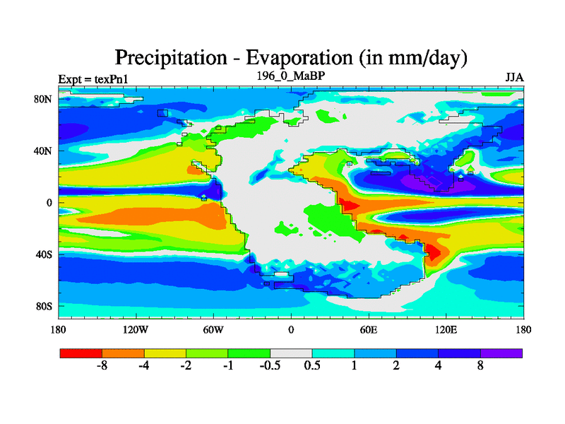 This is the 196.0 Ma simulation using the Scotese palaeogeographies.
