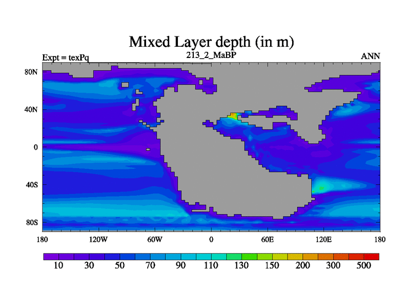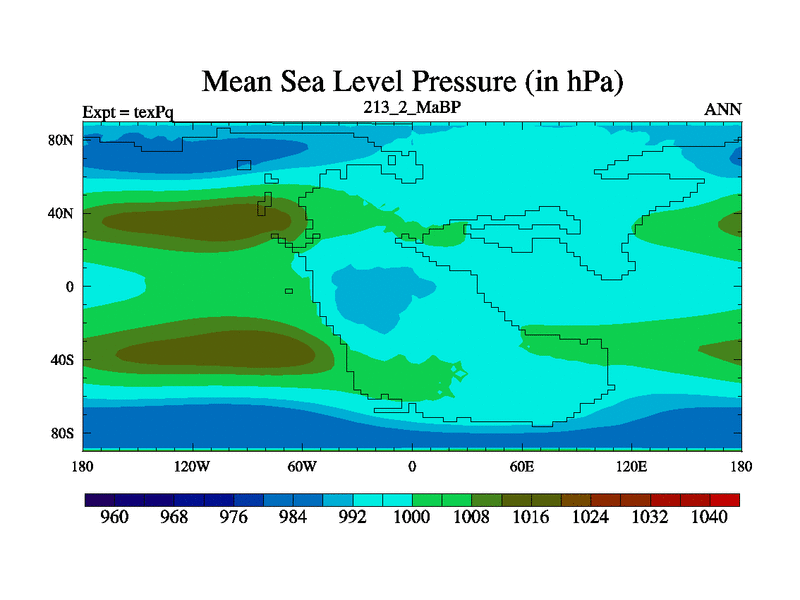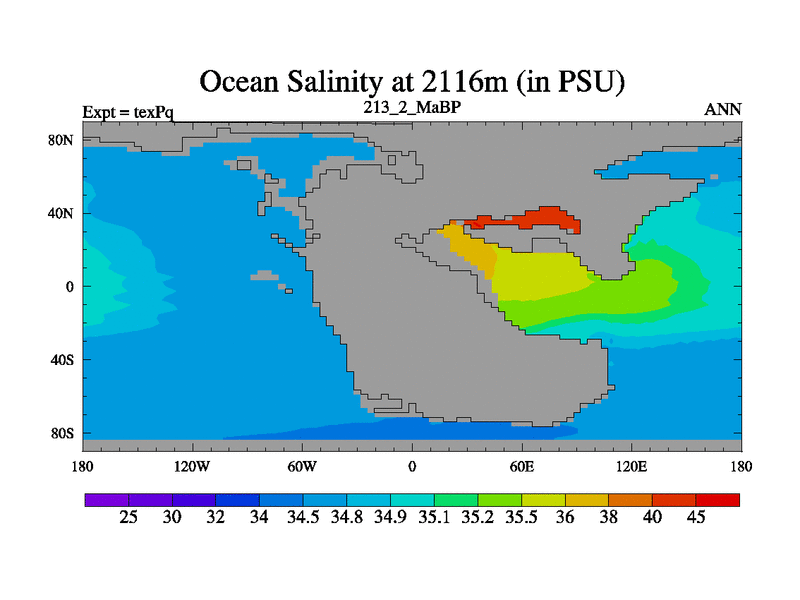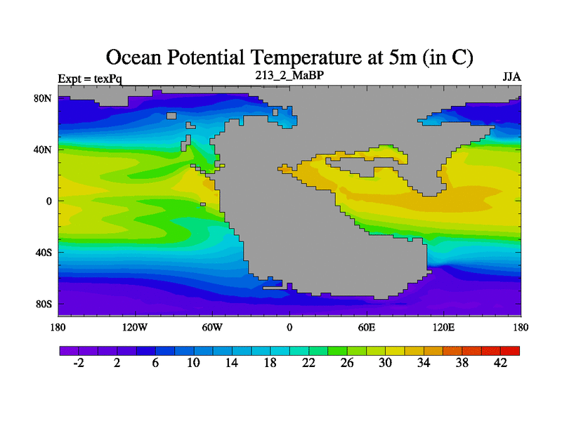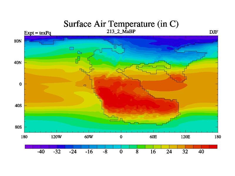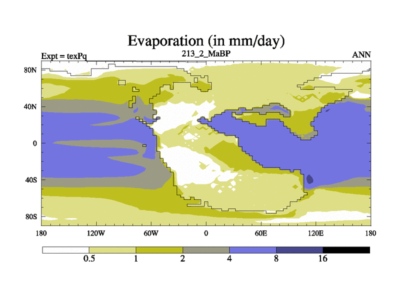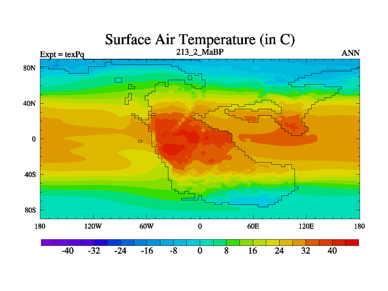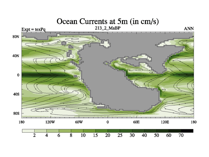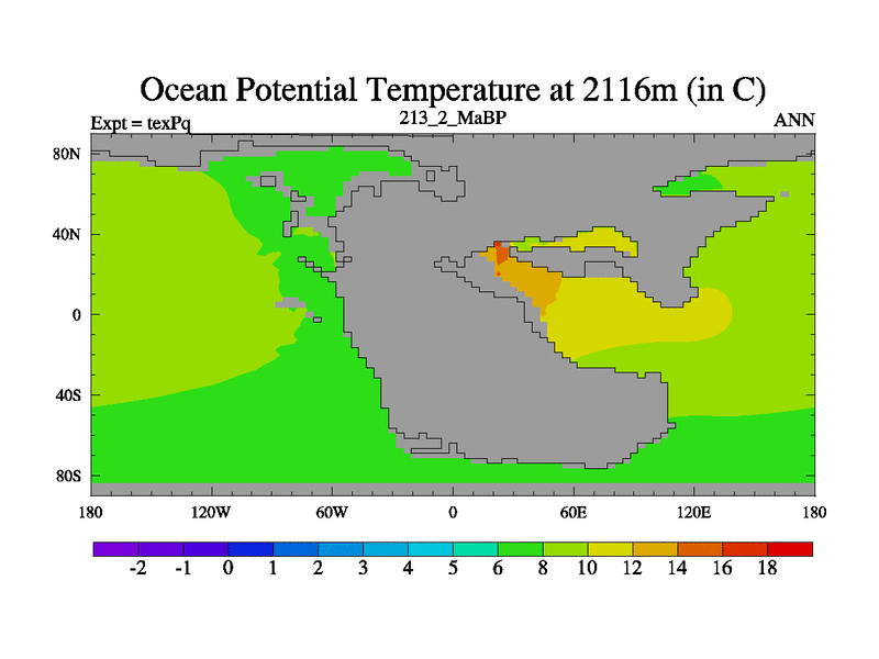 This is the 213.2 Ma simulation using the Scotese palaeogeographies.