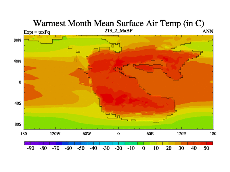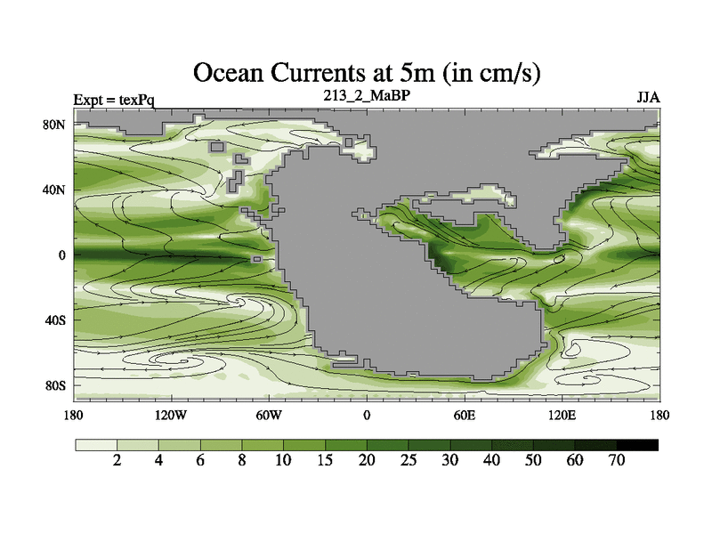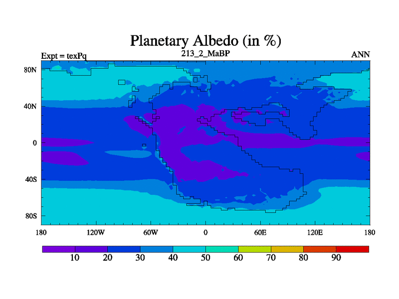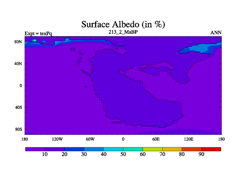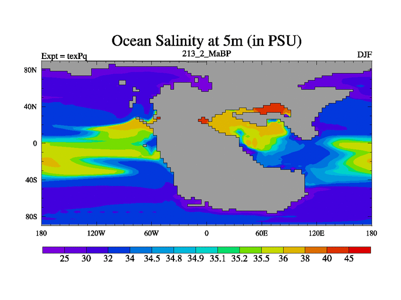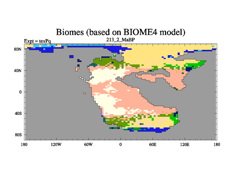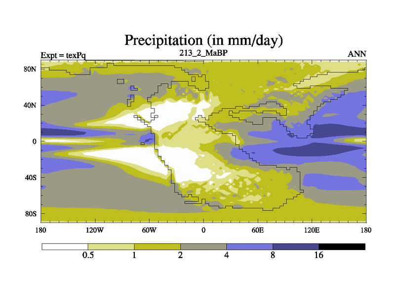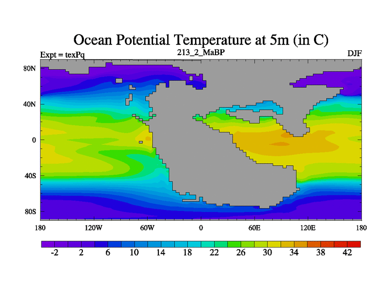 This is the 213.2 Ma simulation using the Scotese palaeogeographies.