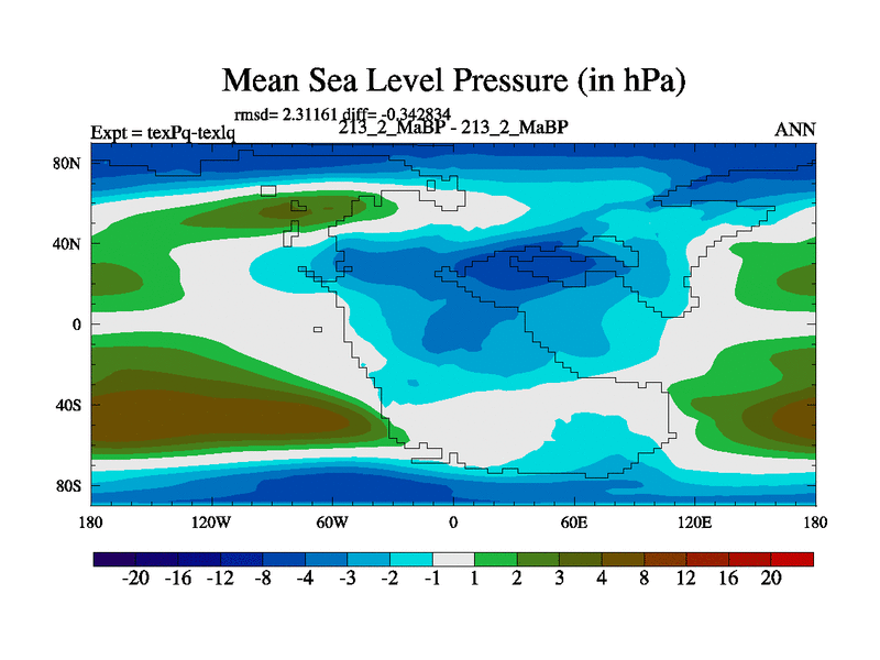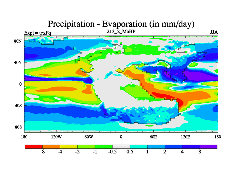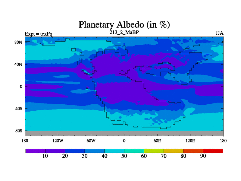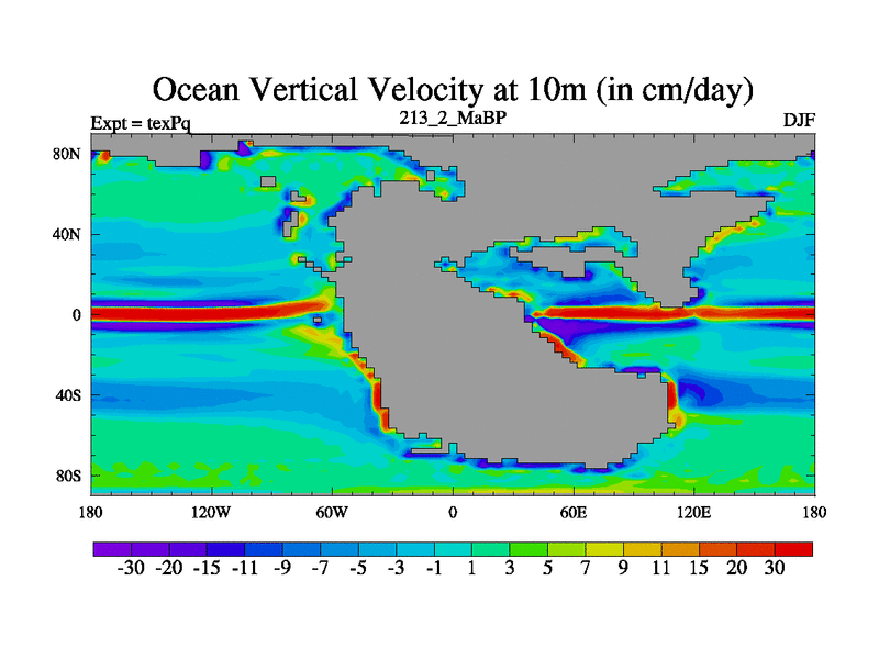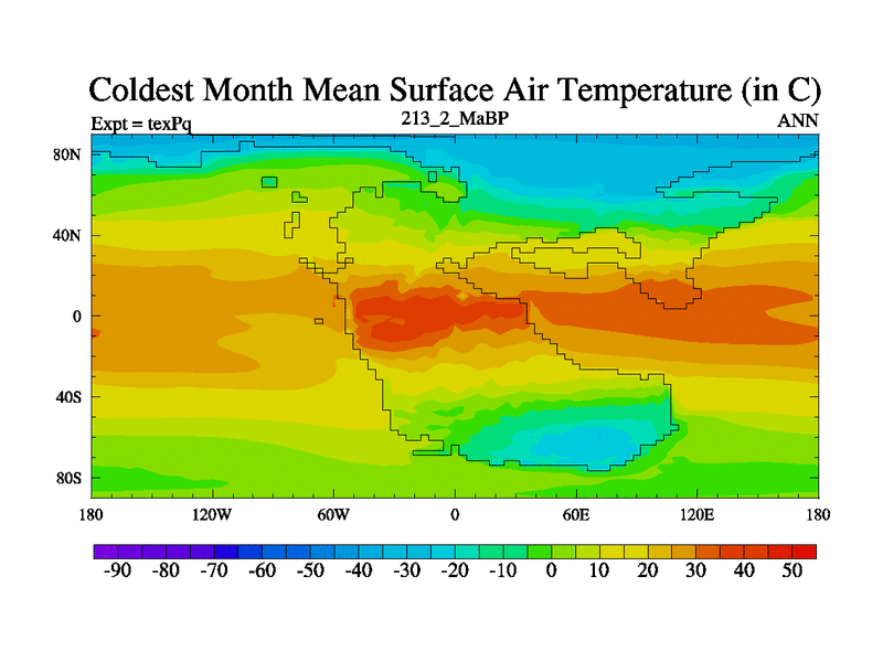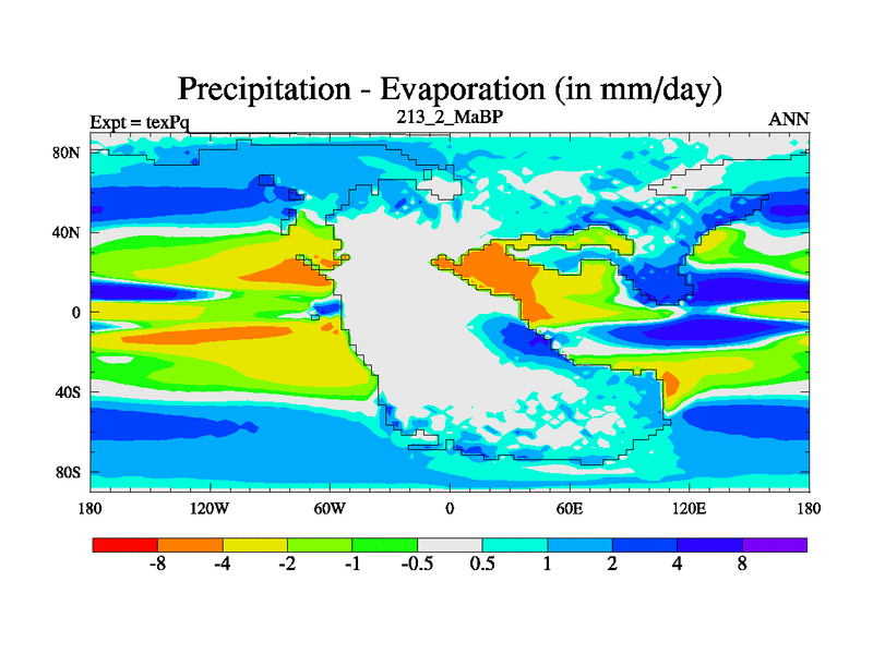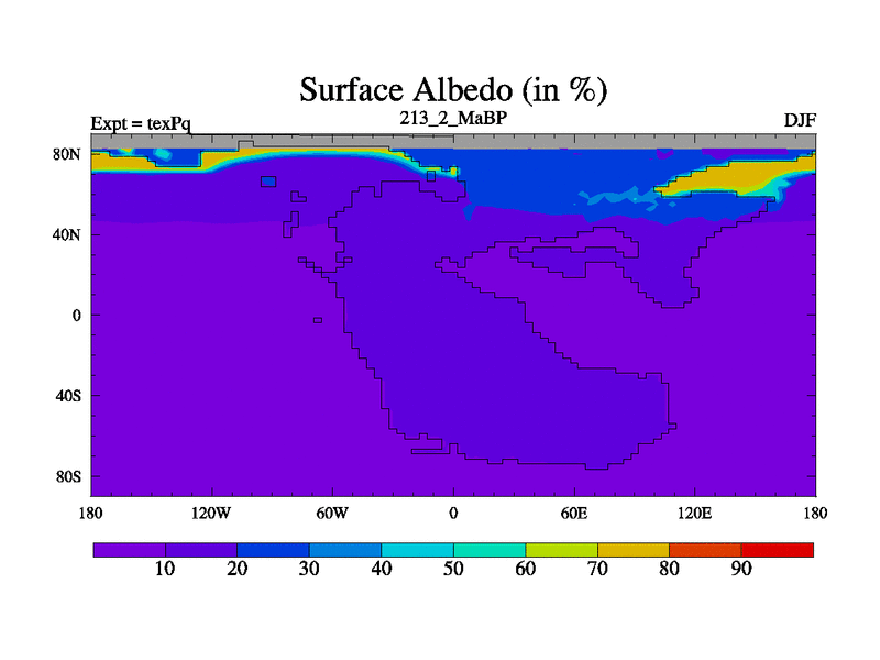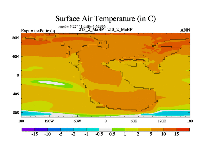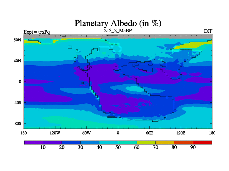 This is the 213.2 Ma simulation using the Scotese palaeogeographies.