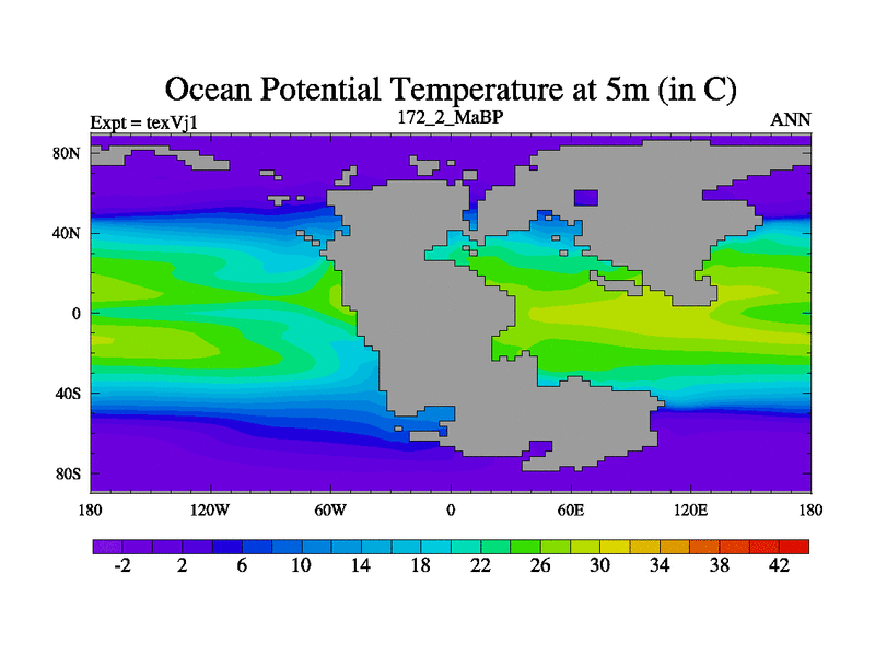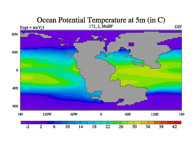 This is the 172.2 Ma simulation using the Scotese palaeogeographies.
