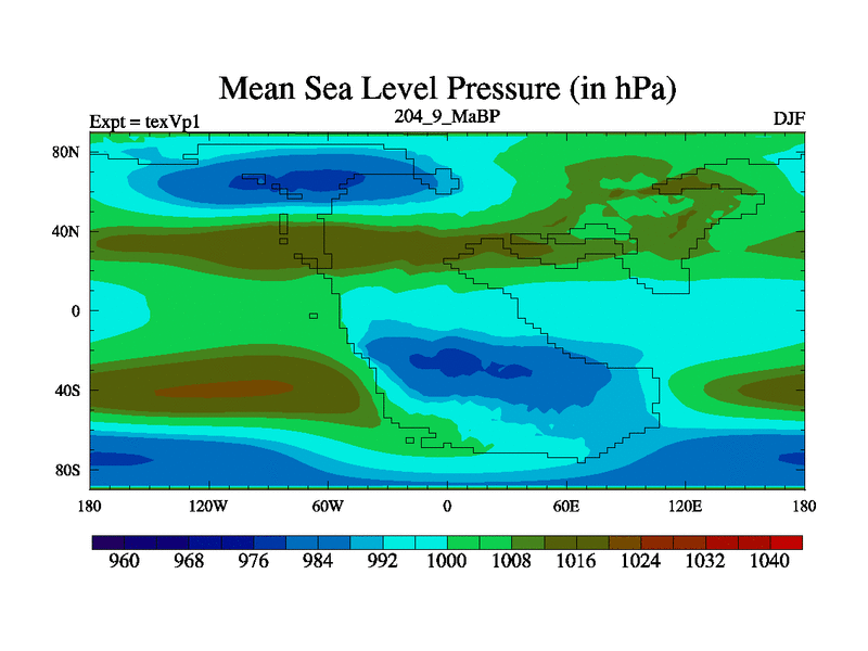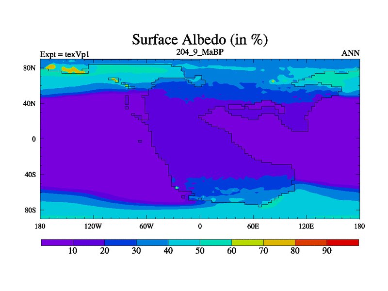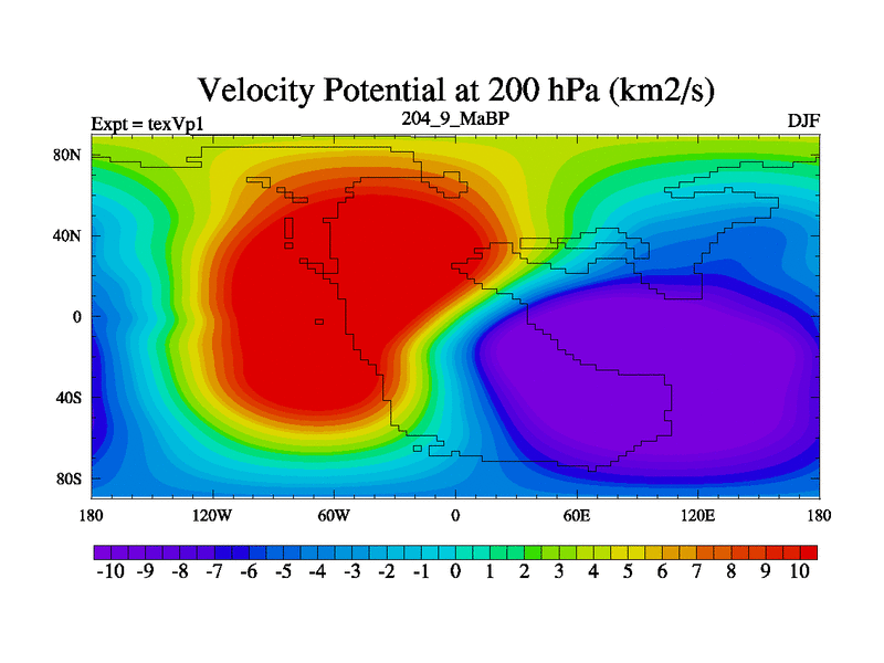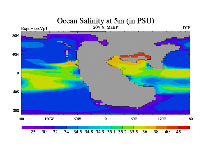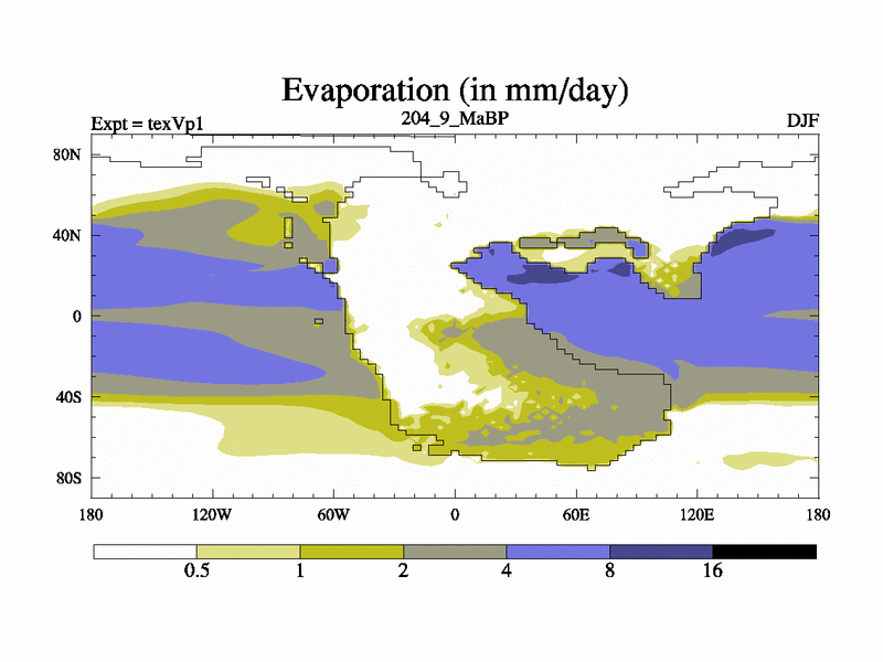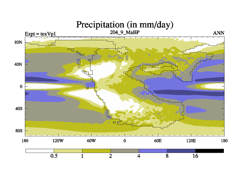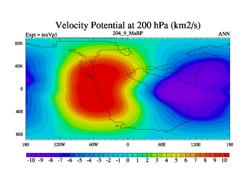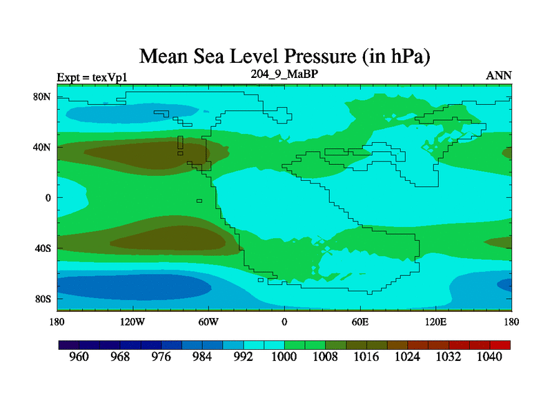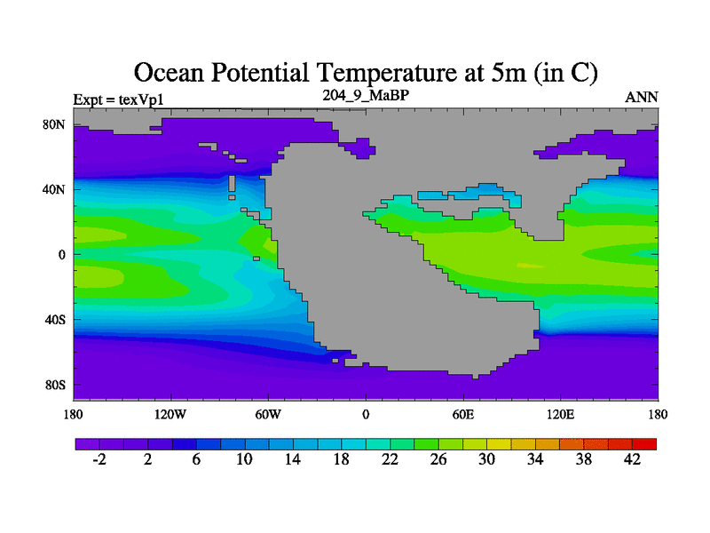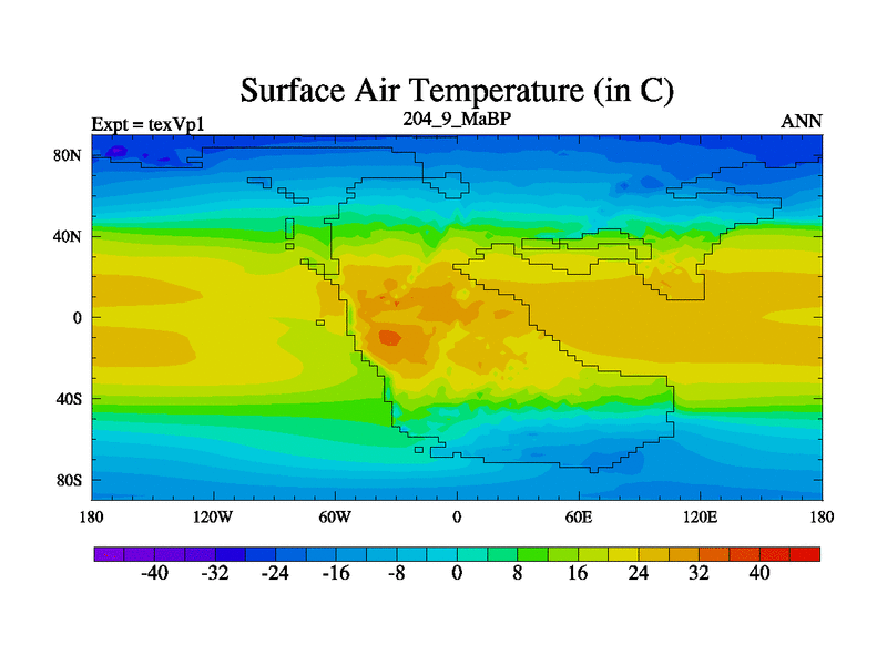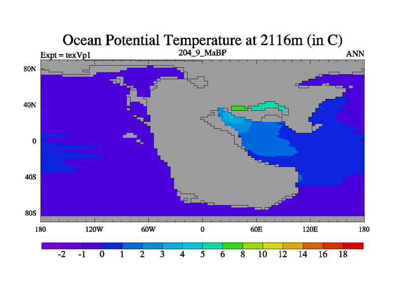 This is the 204.9 Ma simulation using the Scotese palaeogeographies.