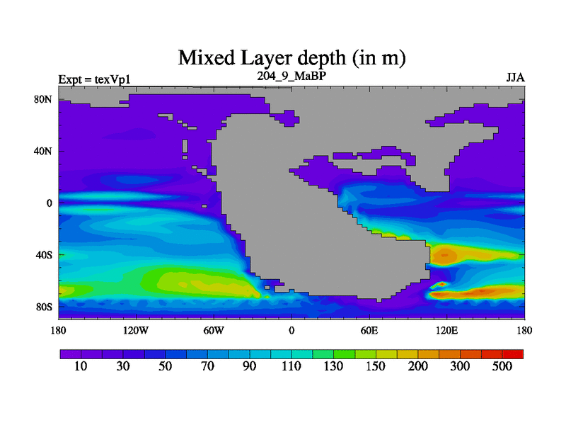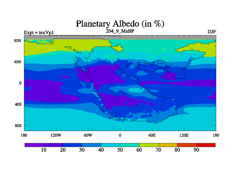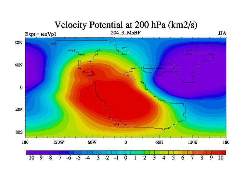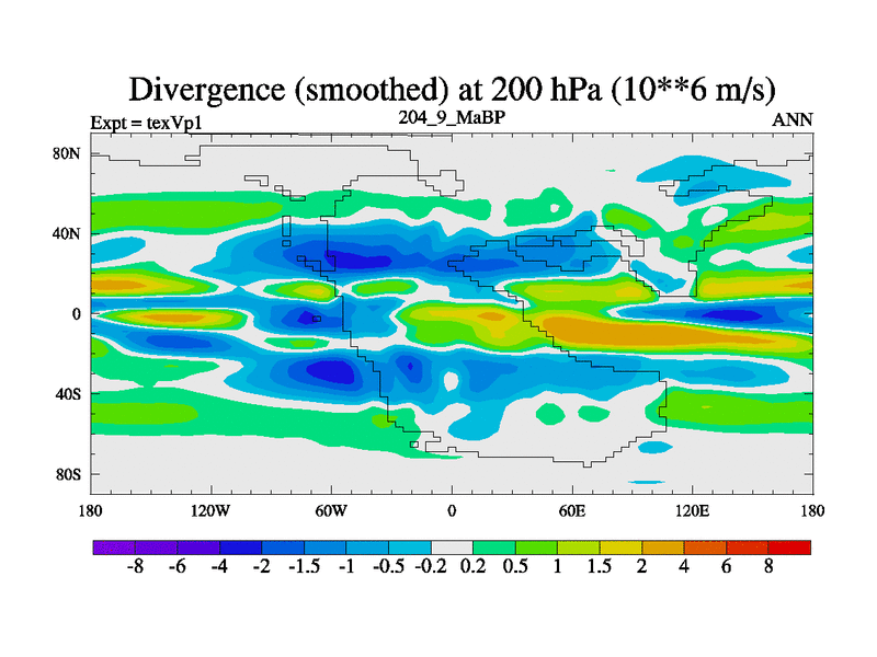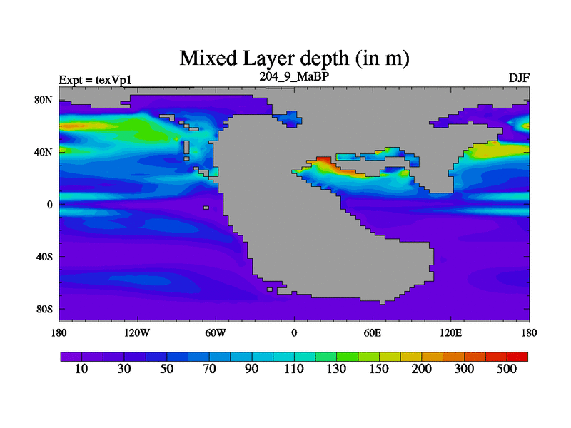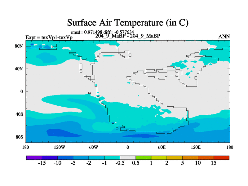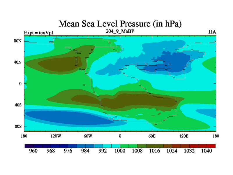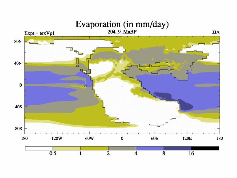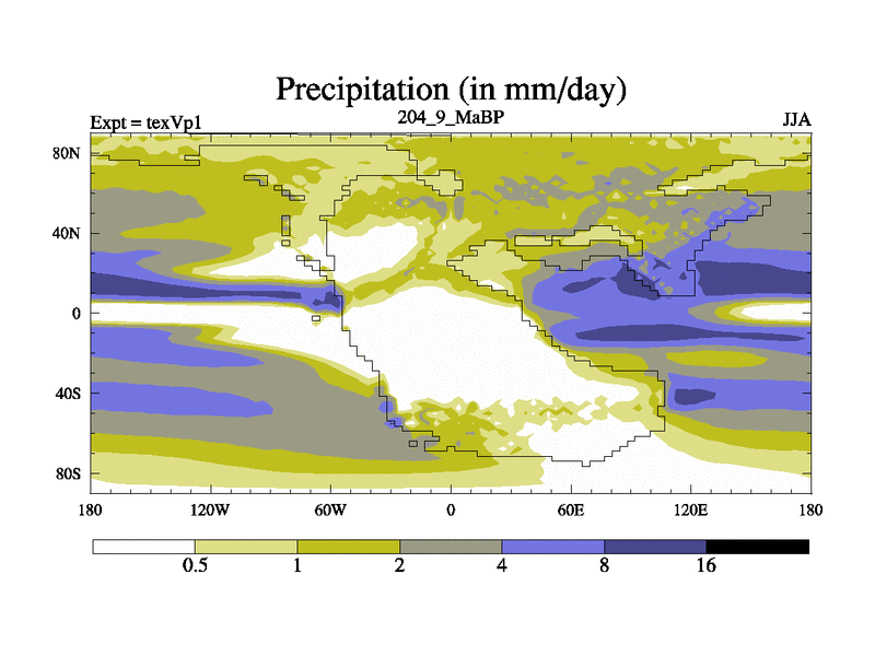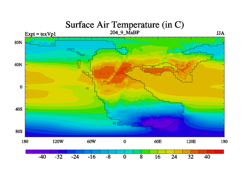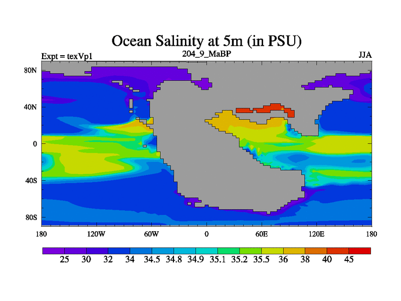 This is the 204.9 Ma simulation using the Scotese palaeogeographies.