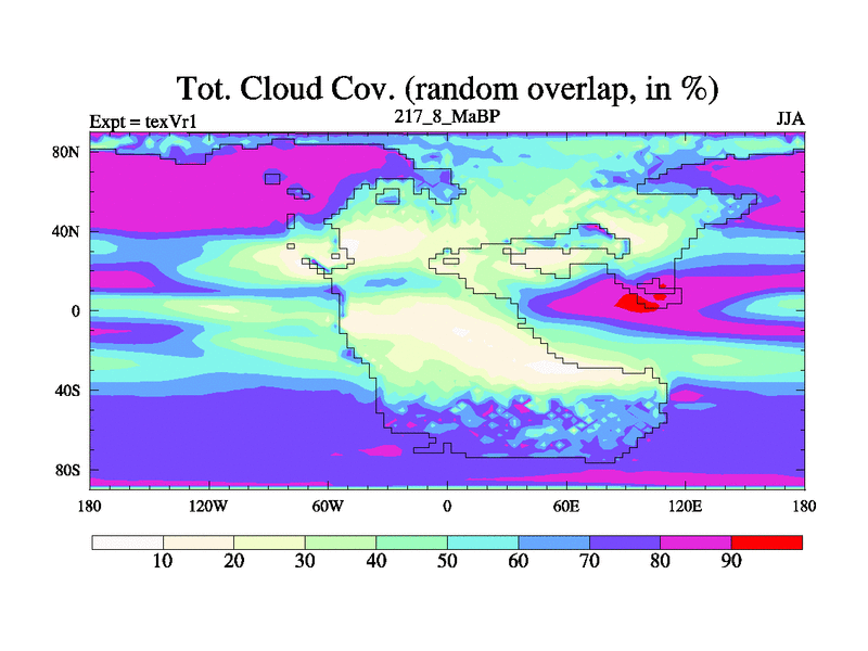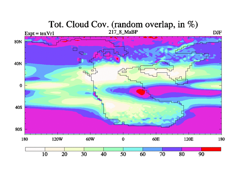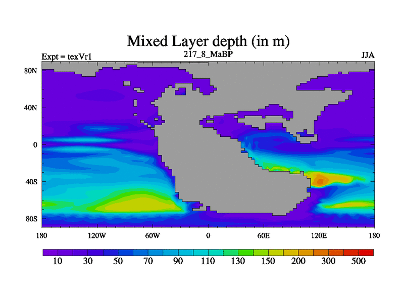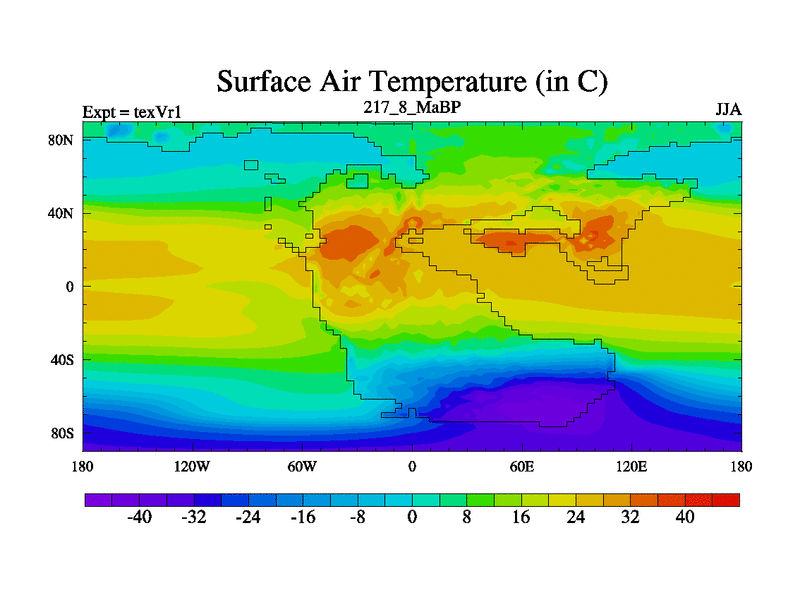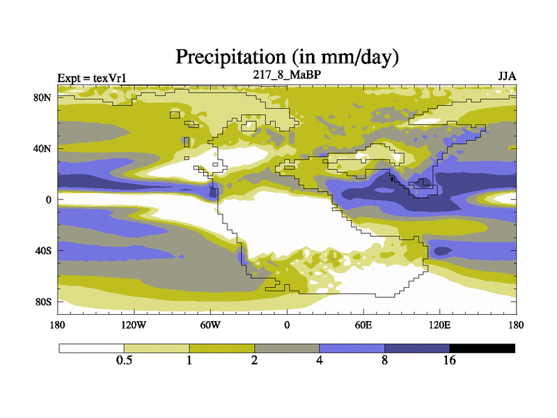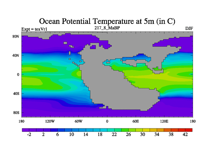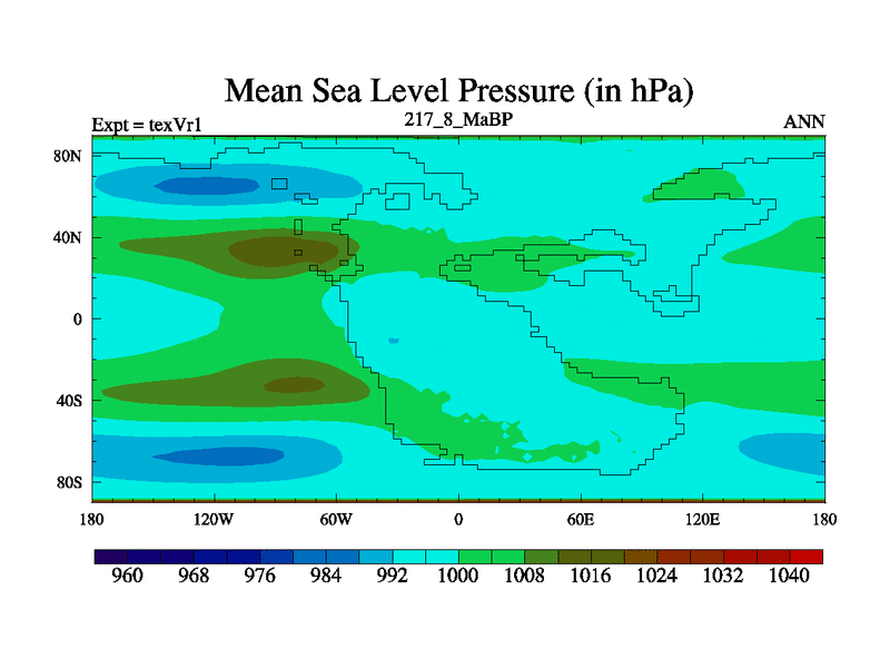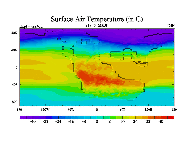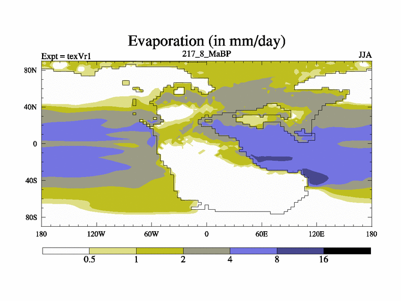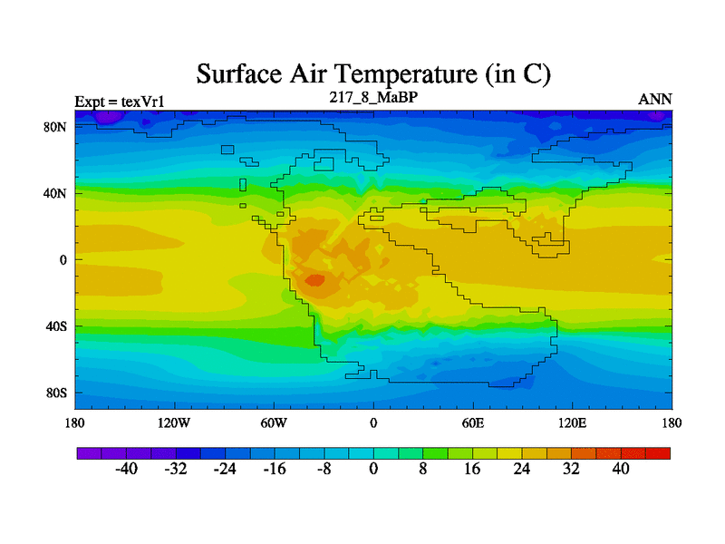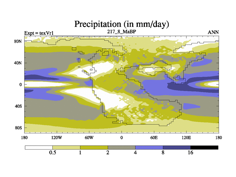 This is the 217.8 Ma simulation using the Scotese palaeogeographies.