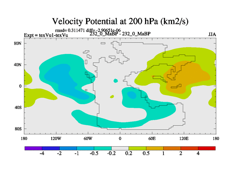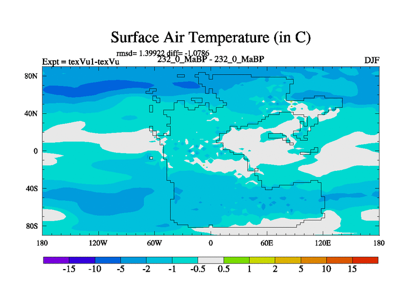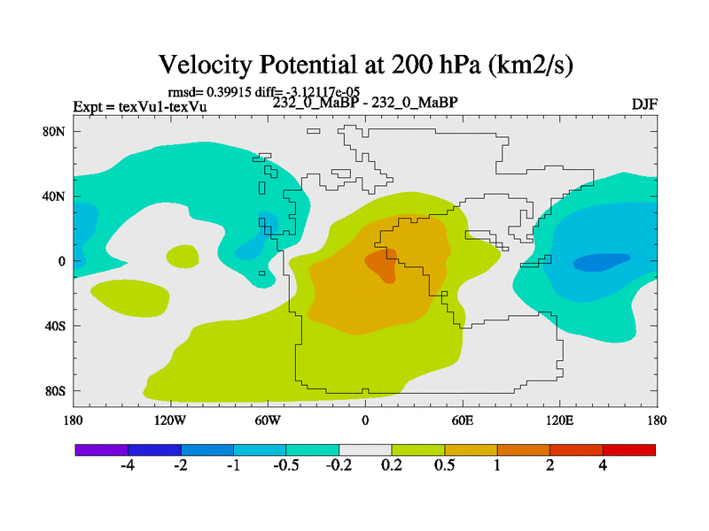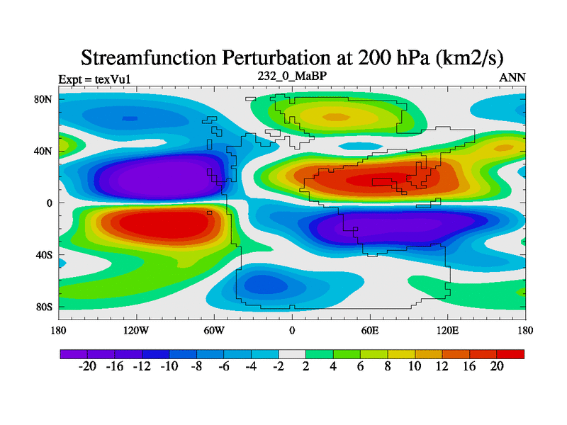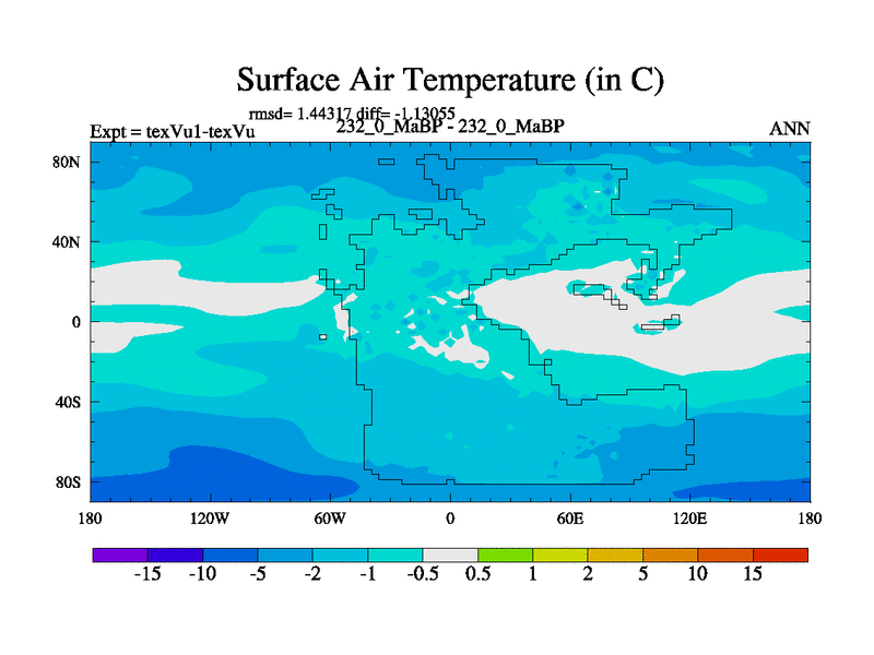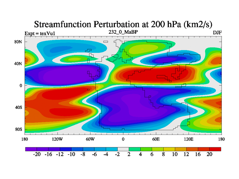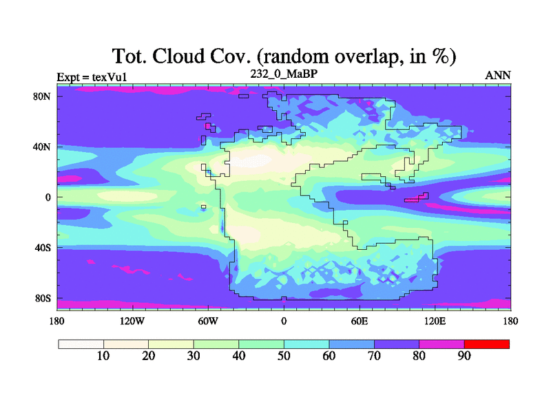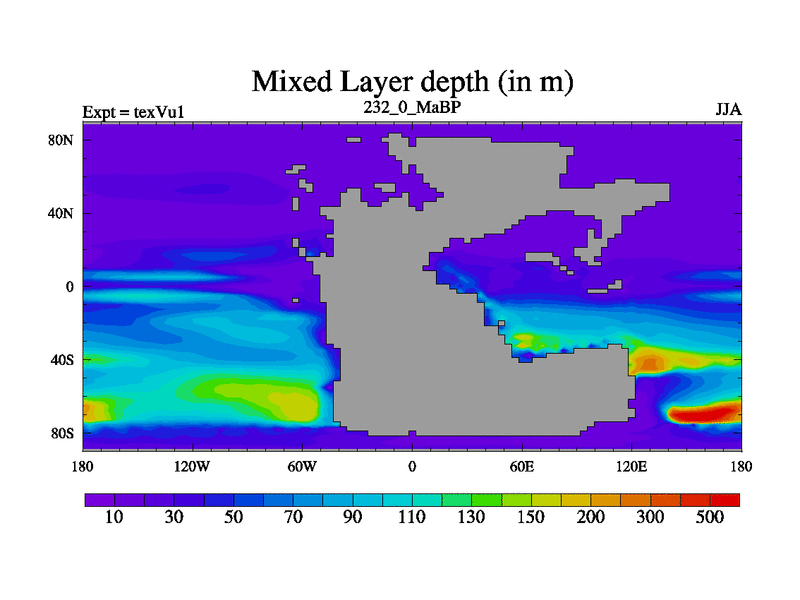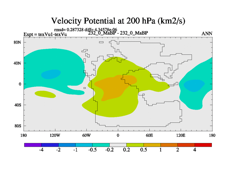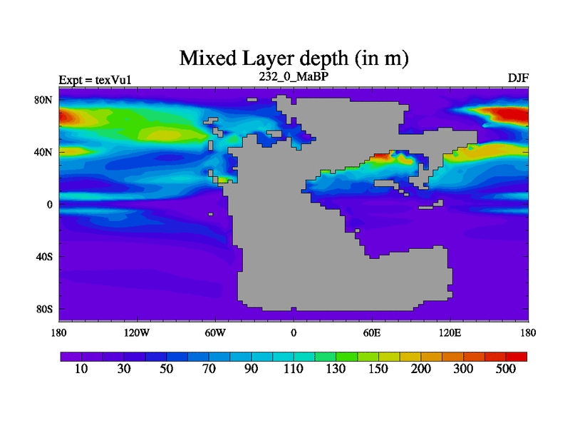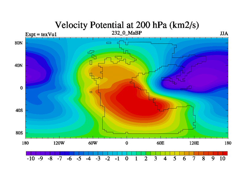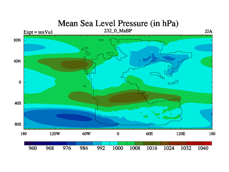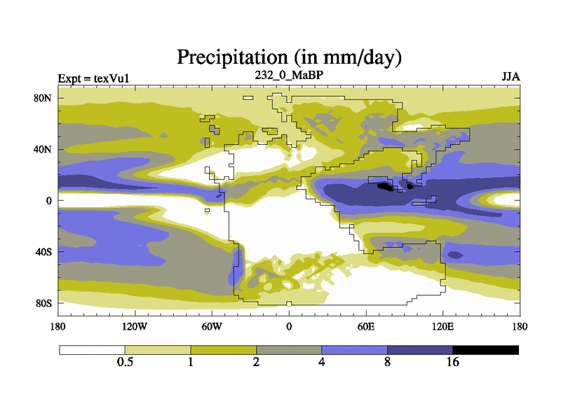 This is the 232.0 Ma simulation using the Scotese palaeogeographies.