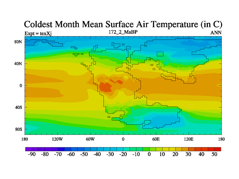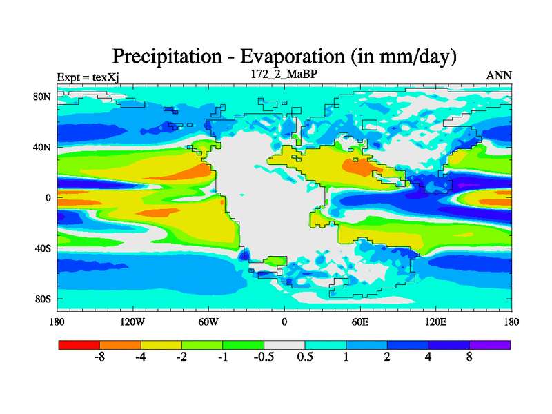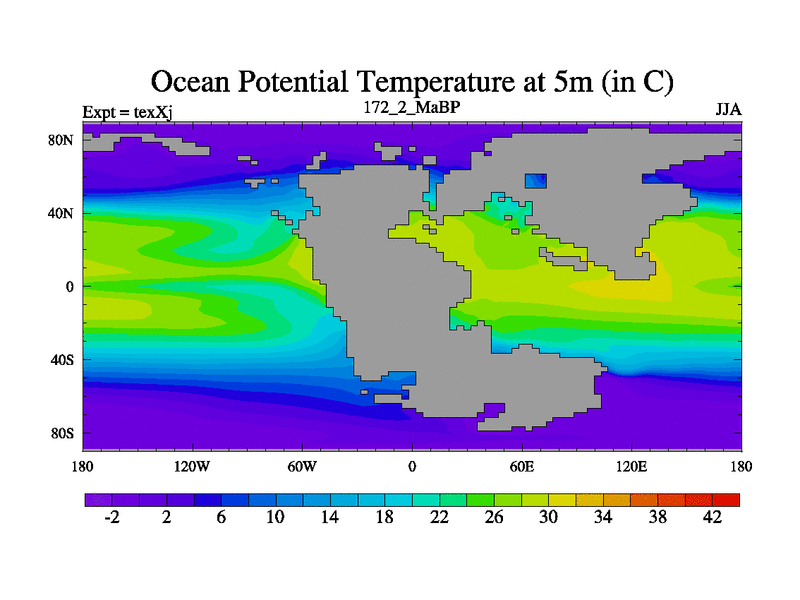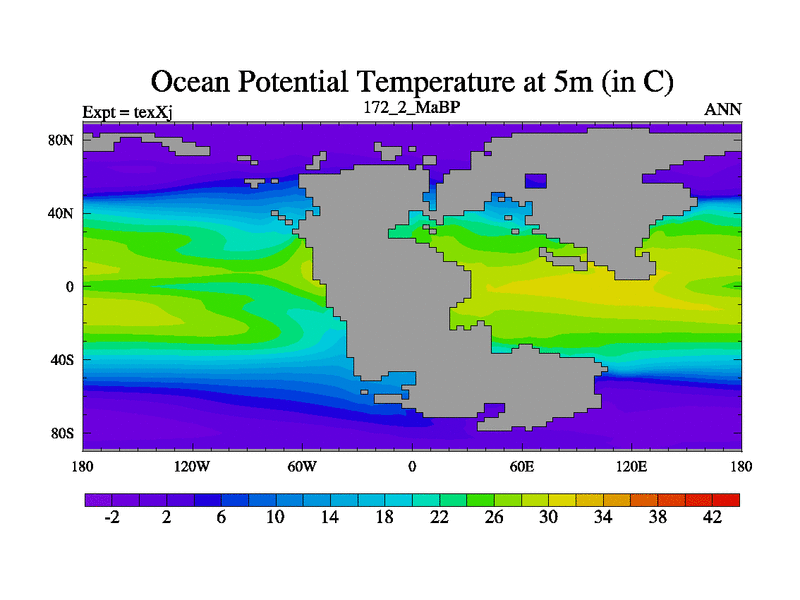 This is the 172.2 Ma simulation using the Scotese palaeogeographies.
